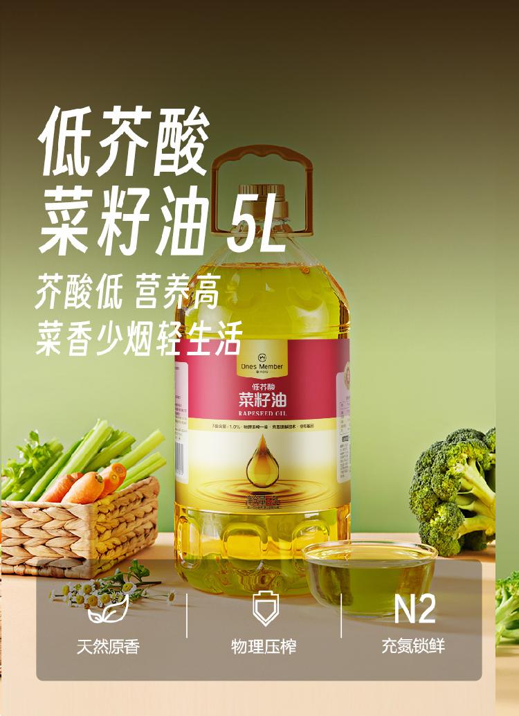 Member Store No. 1 Fidelity Rapeseed Oil Pressed First-grade Low-Eucic Acid Rapeseed Oil Nitrogen-filled to Lock Fresh Edible Oil 5L