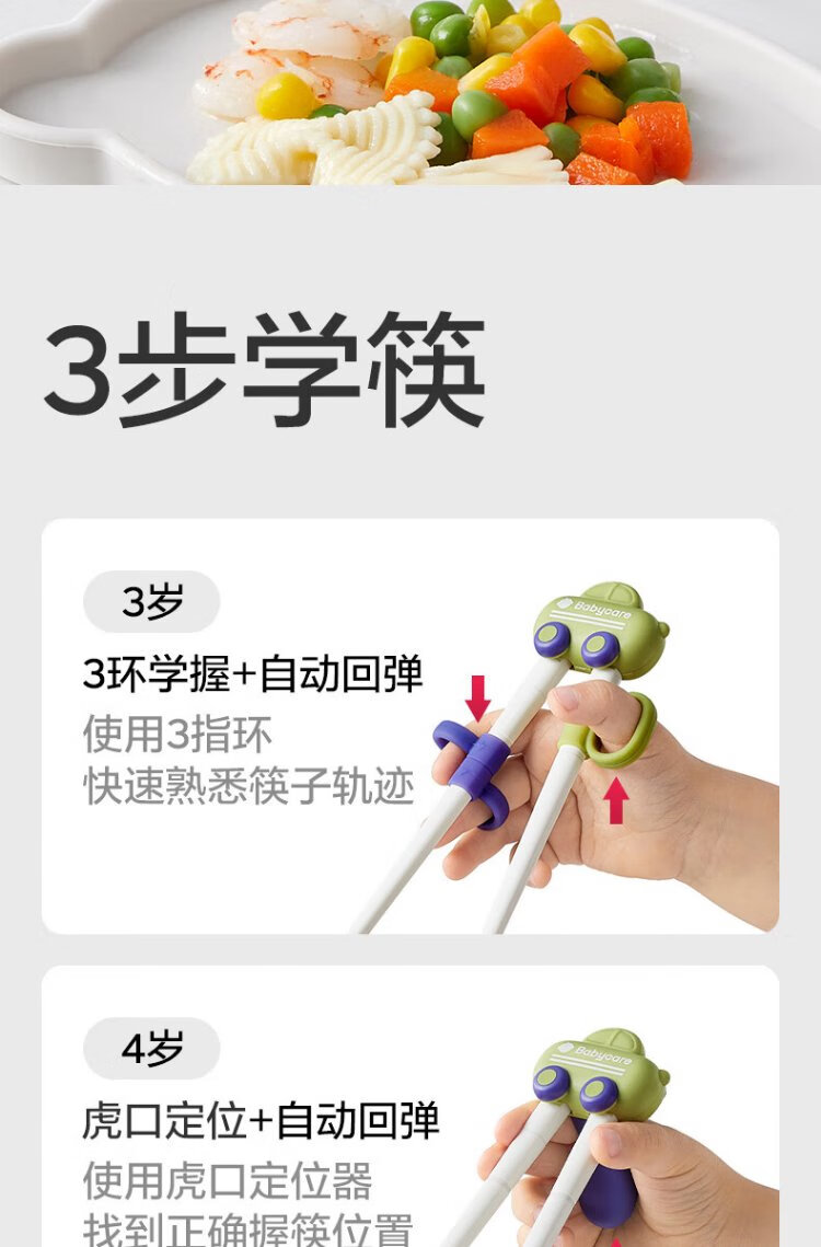 Babycare children's training chopsticks automatically rebound learning chopsticks tiger's mouth 3-6 years old practice chopsticks tipqi green - no storage box