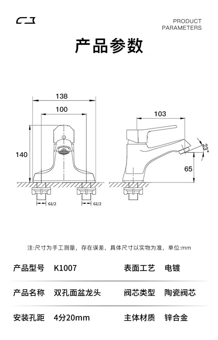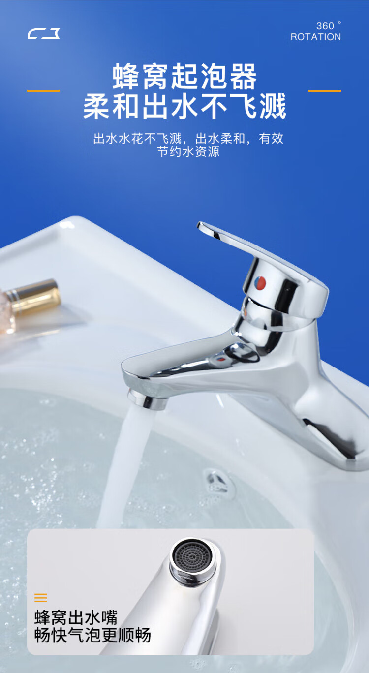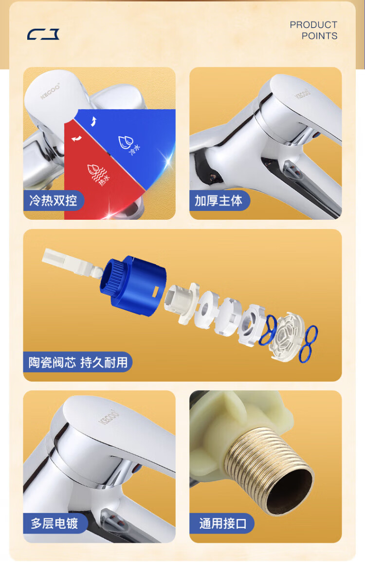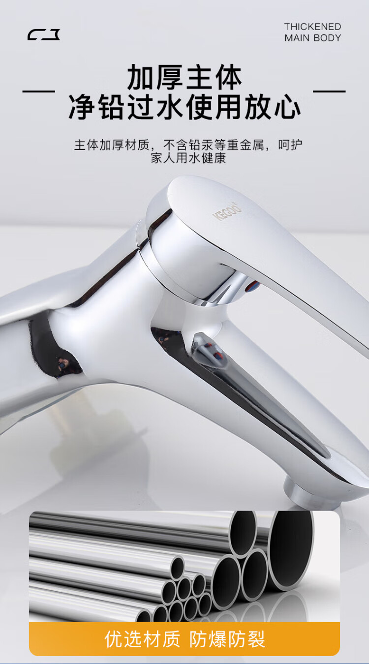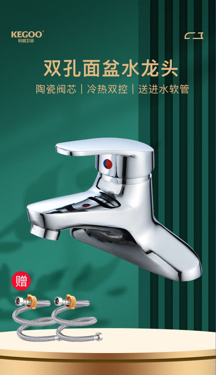 KEGOO double-hole basin faucet hot and cold bathroom face wash bathroom basin wash basin alloy faucet with tube K1007