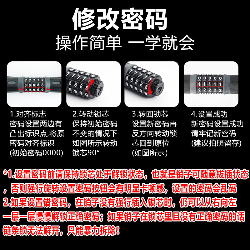 Tuoling Zongheng AQQJ1205 password chain lock bicycle lock mountain bike lock battery lock glass door lock anti-theft lock five-digit chain password lock