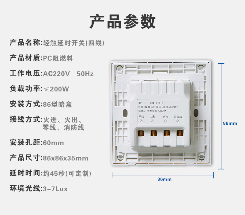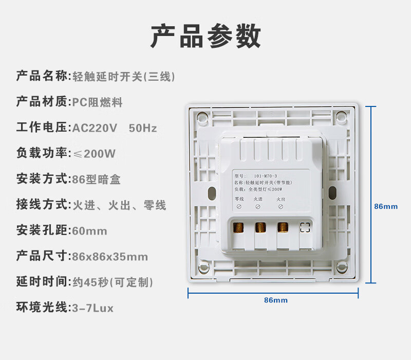 Cast solid touch delay switch property corridor light touch sensor switch button second line panel white 101-M70 (second line)