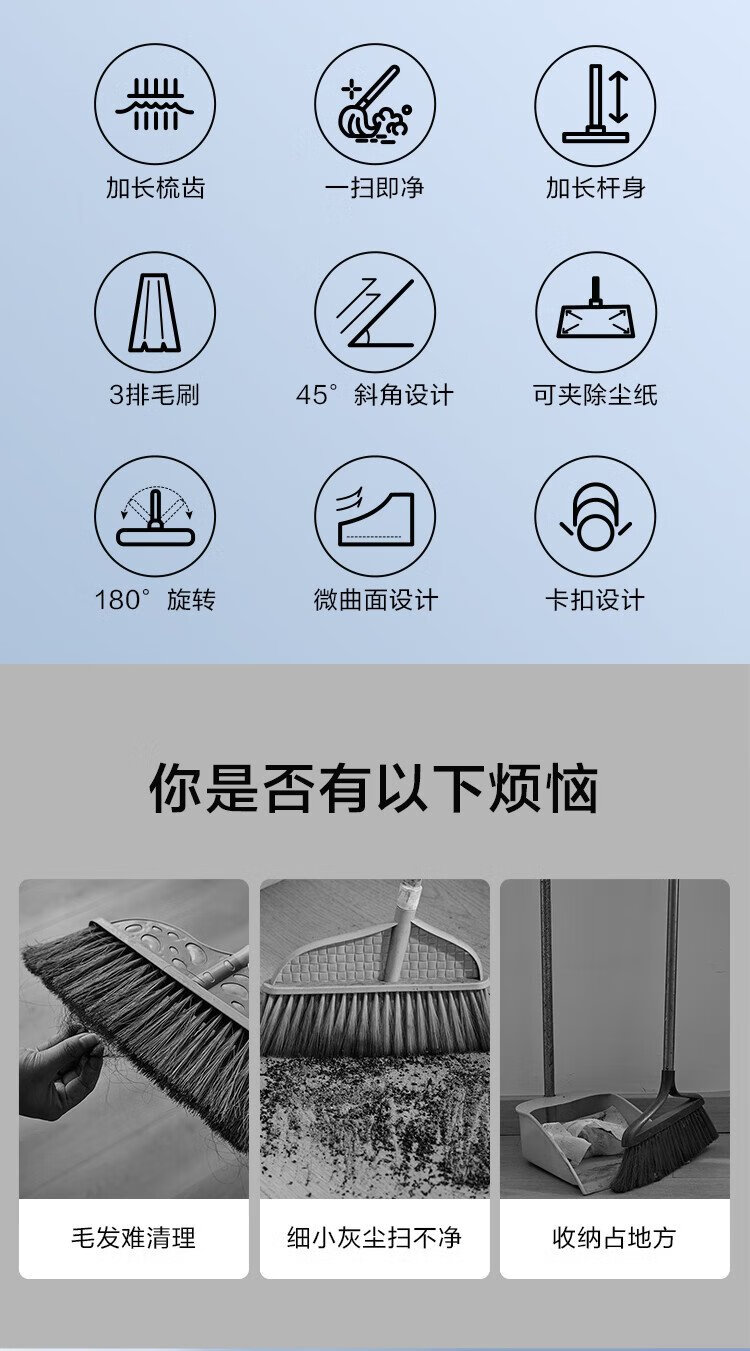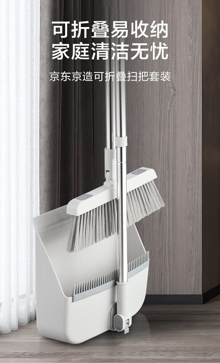 Foldable broom and dustpan set made in Jingdong, household cleaning garbage shovel with extended encrypted comb teeth, broom and broom two-piece set