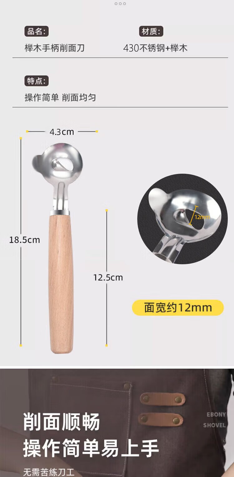 Dipur noodle shaving knife, special knife for slicing noodles, household wooden handle, stainless steel, Shanxi pasta professional tool, noodle slicing artifact