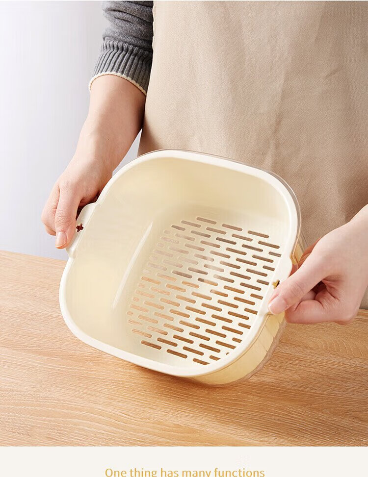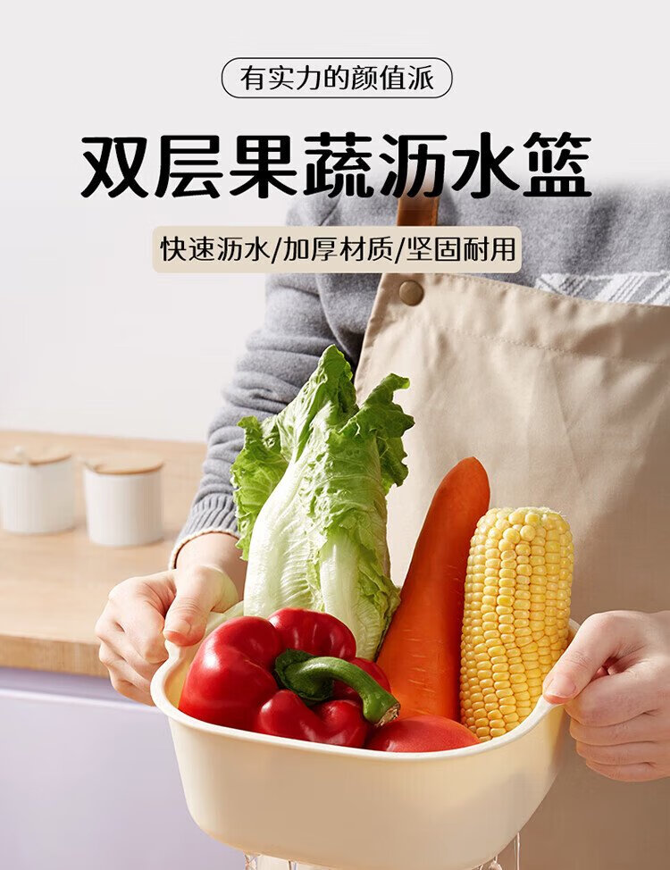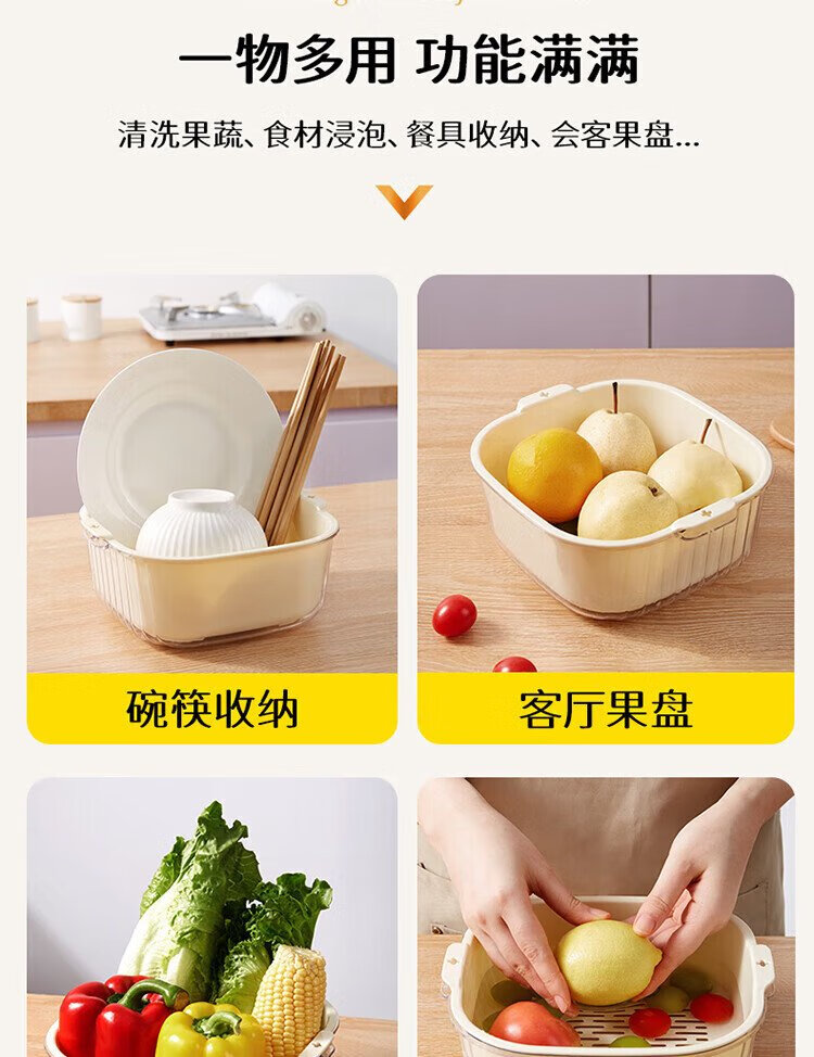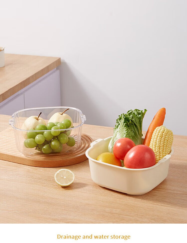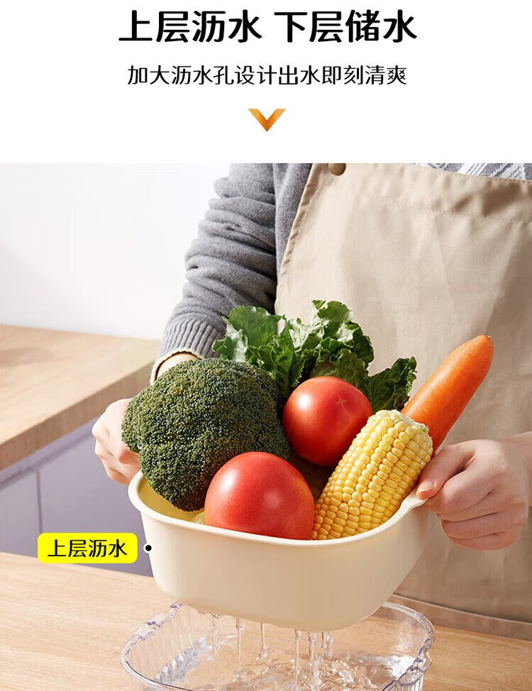 Baijie double-layer vegetable basket, fruit basket, drain basket, basin sieve, kitchen vegetable basket, household fruit plate, multi-functional vegetable basin set
