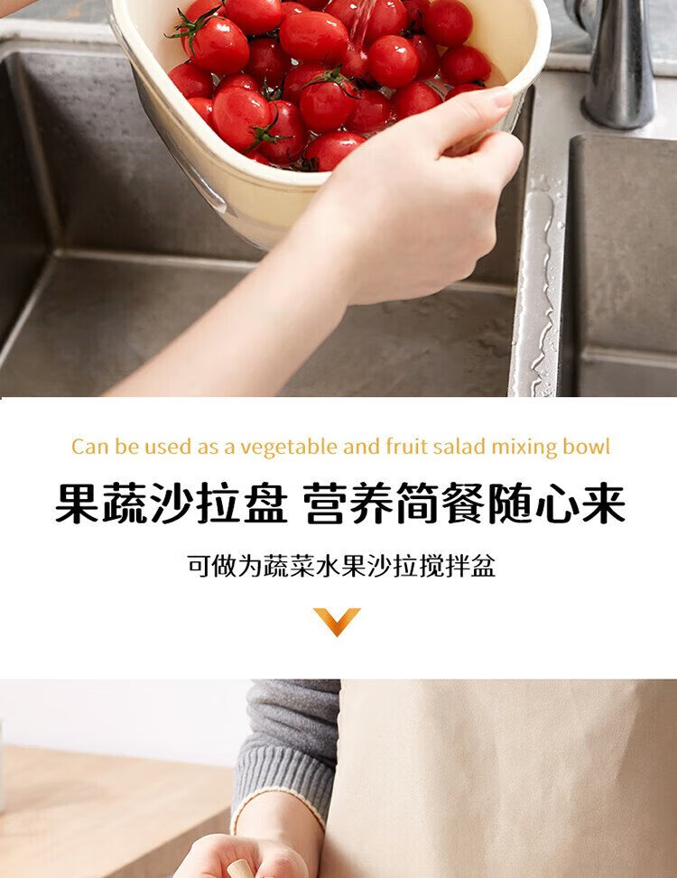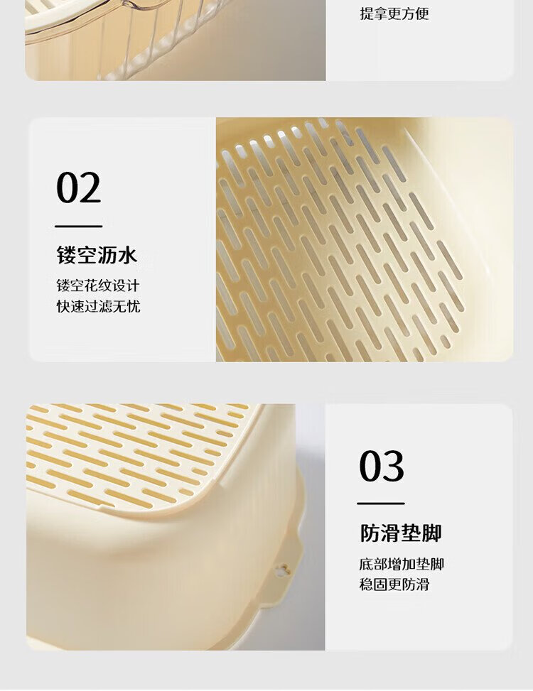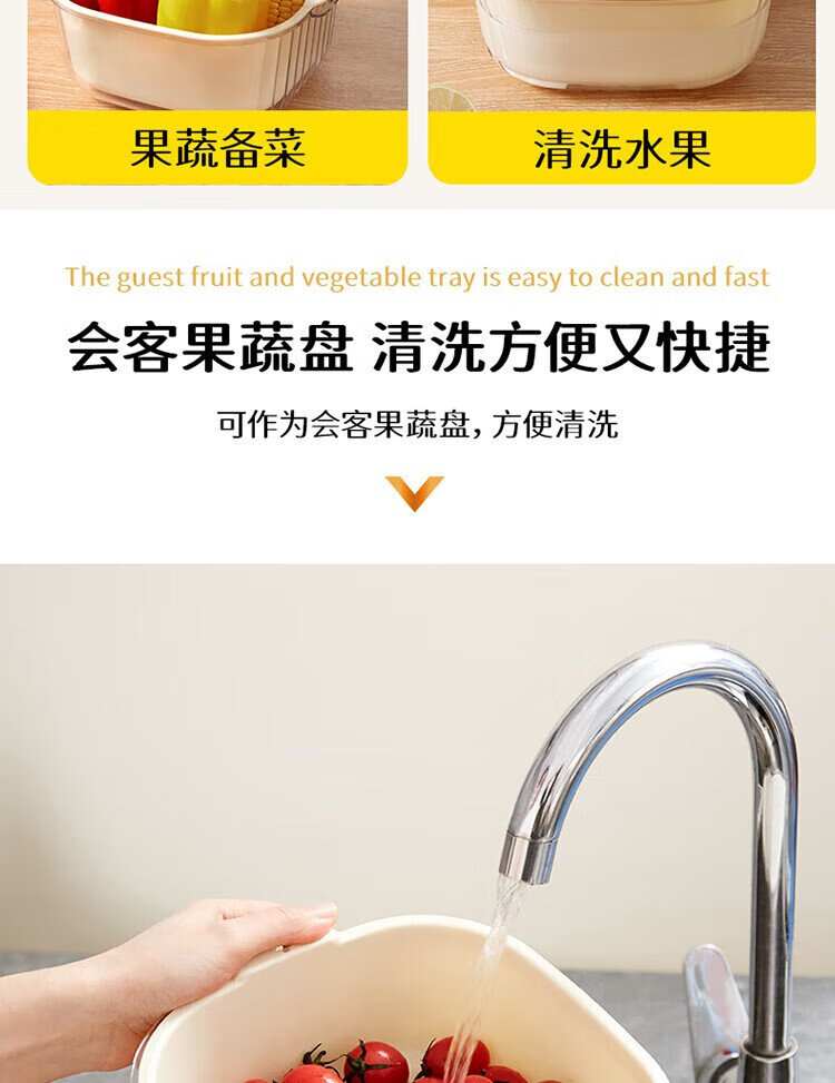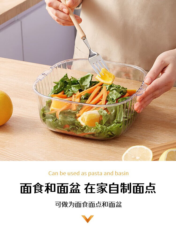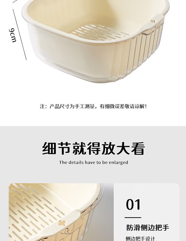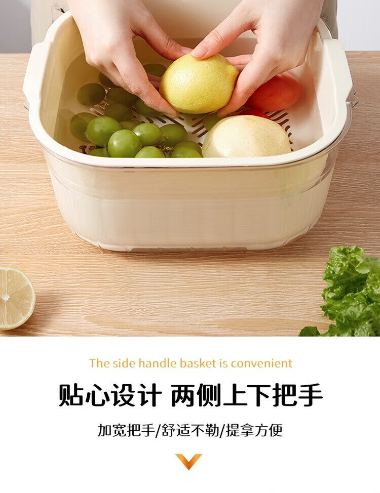 Baijie double-layer vegetable basket, fruit basket, drain basket, basin sieve, kitchen vegetable basket, household fruit plate, multi-functional vegetable basin set
