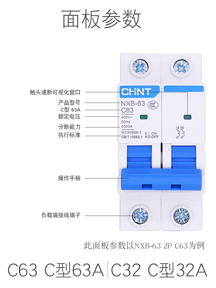 Chint (CHNT) overload air switch NXB-63-2P-C32 small circuit breaker 32A