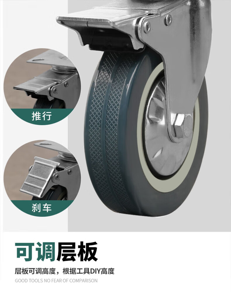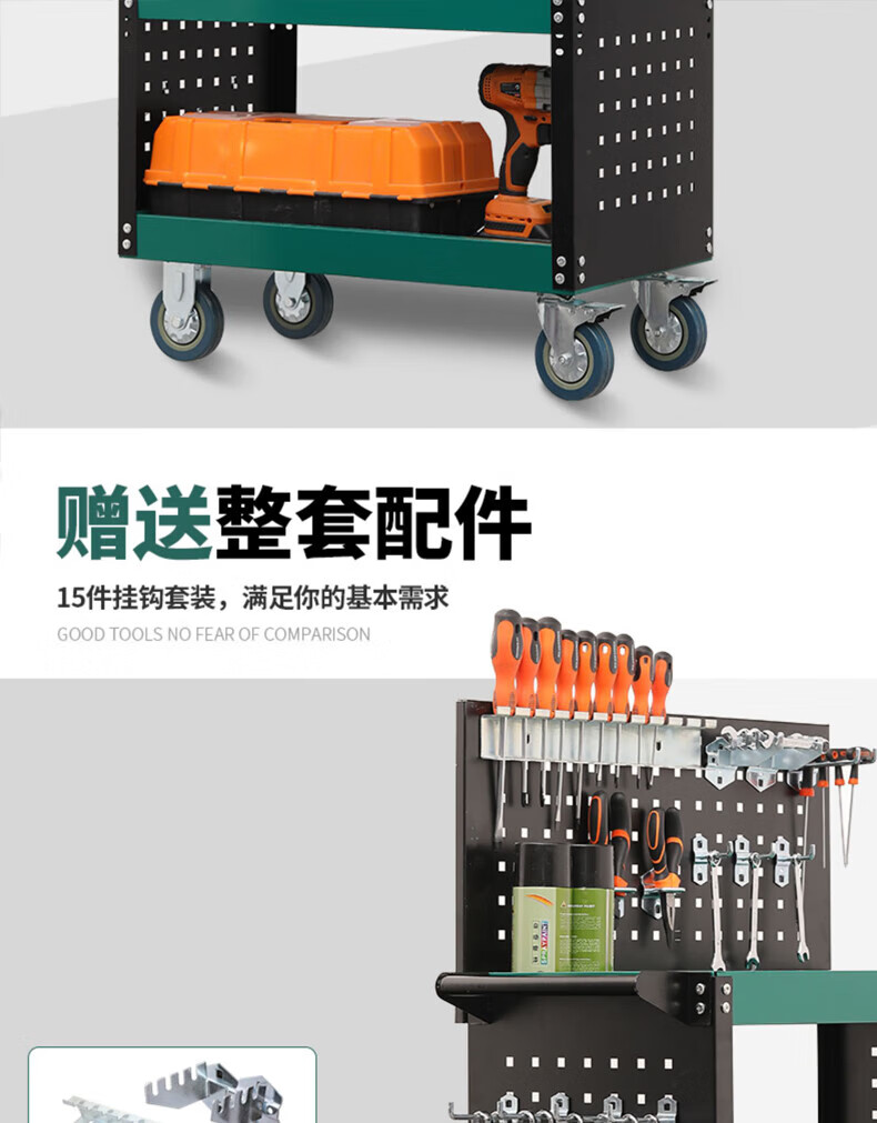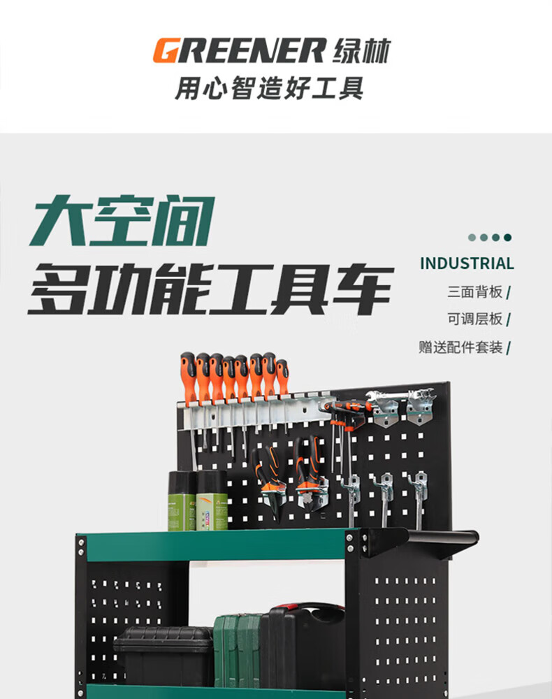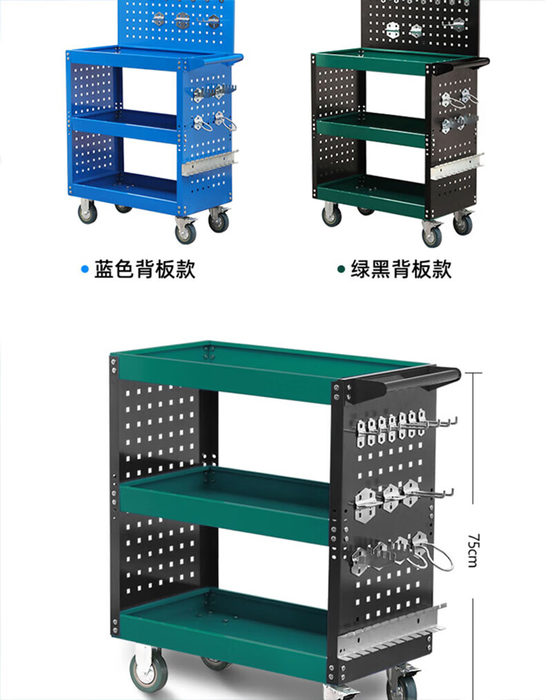 GREENER Tool Cart Trolley Multi-Function Parts Cart Luxury Green and Black + Grid + Back Plate