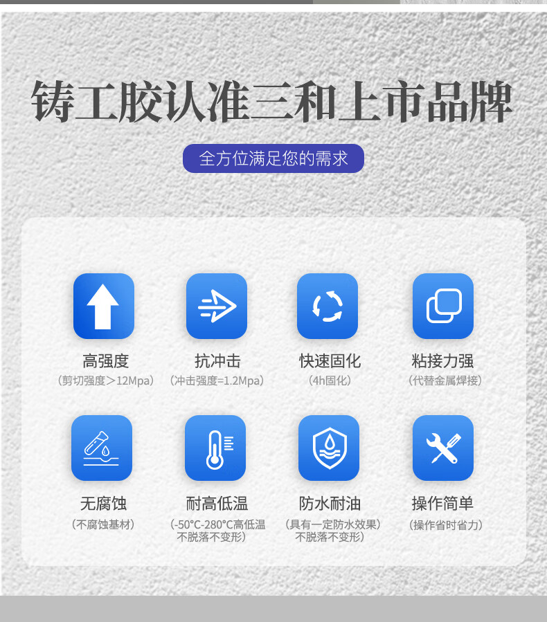 Sanhe Caster's Glue Industrial Welding Glue Welding Agent Strong High Temperature Resistance and Waterproof Sticky Iron Metal Oil Tank Water Tank Water Pipe Radiator Leak Repair
