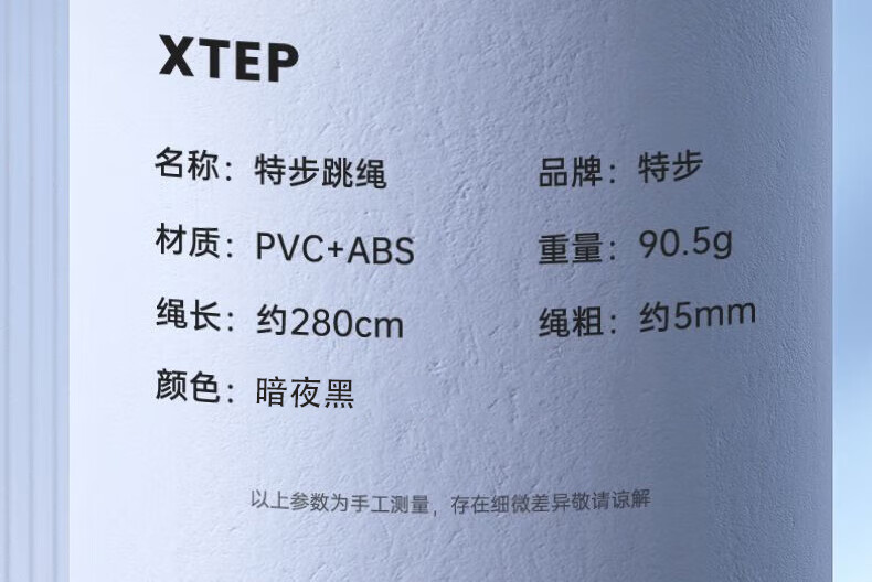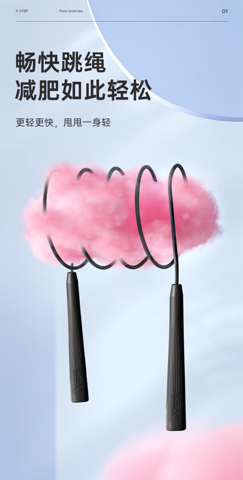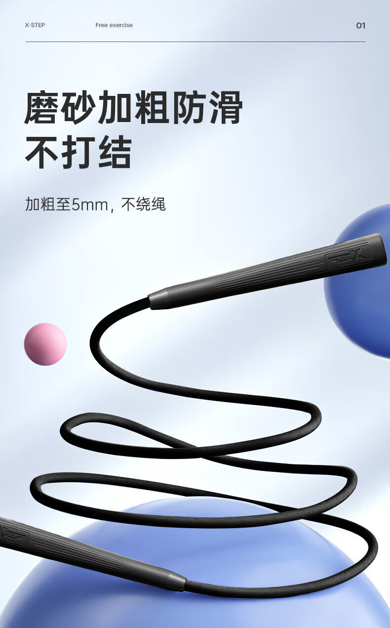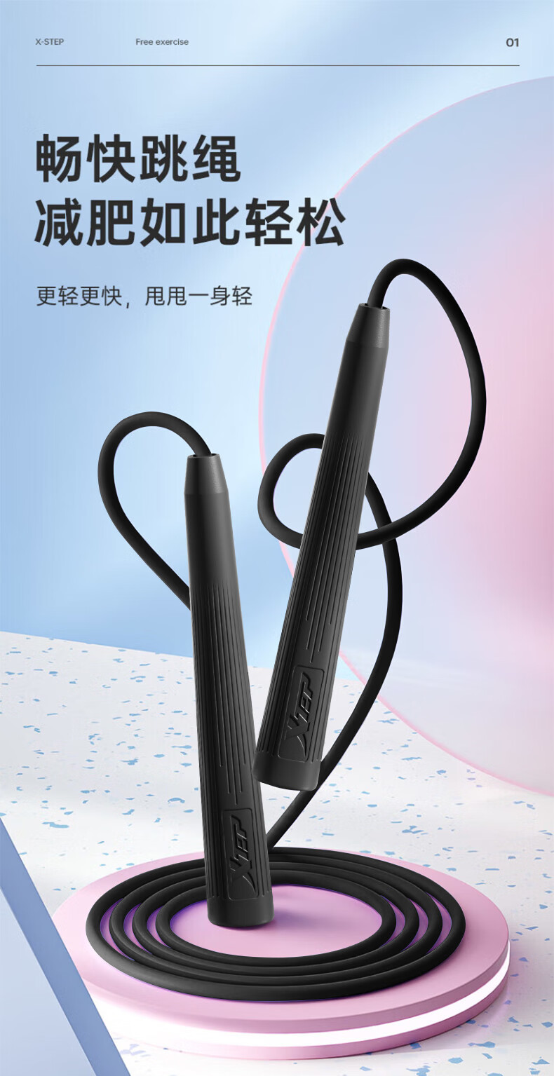 XTEP (XTEP) skipping rope for children, primary school students, beginners, sports and fitness, professional racing skipping rope, fitness for adults, high school examination rope, black