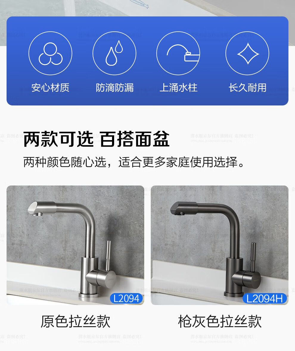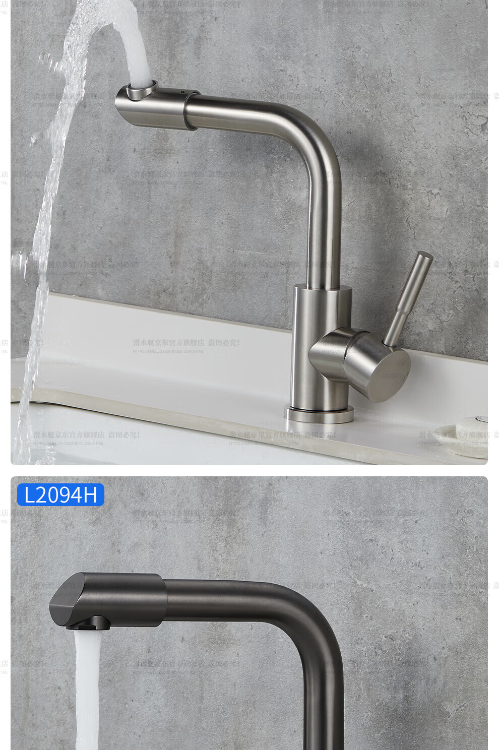 Submarine L2094 basin faucet universal 360 degree rotating outlet hot and cold dual chamber stainless steel ceramic valve core