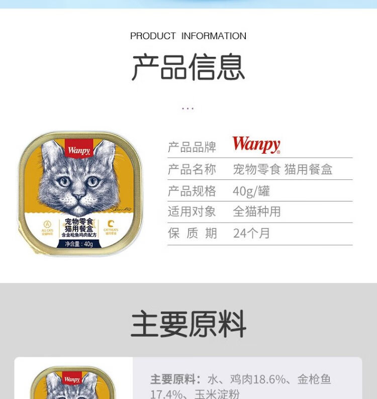 Wanpy cat canned cat snacks cat lunch box 40g*24 mixed flavor canned cat bird stomach