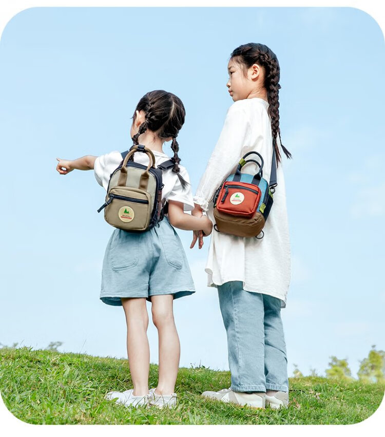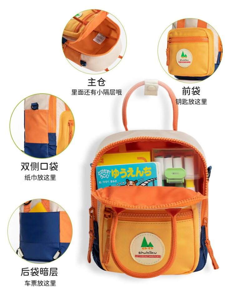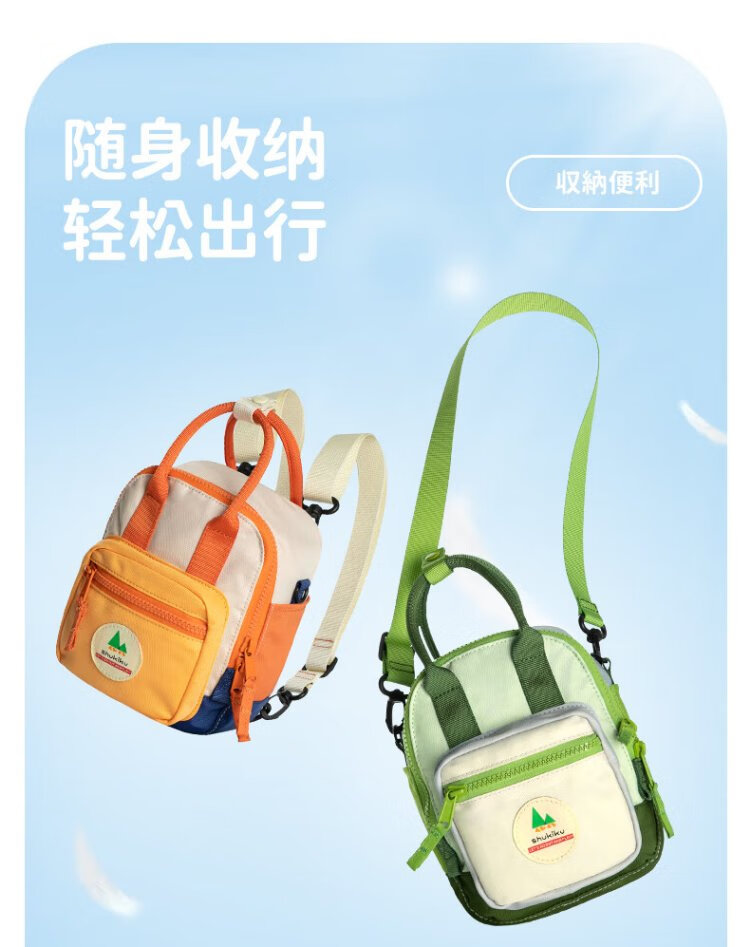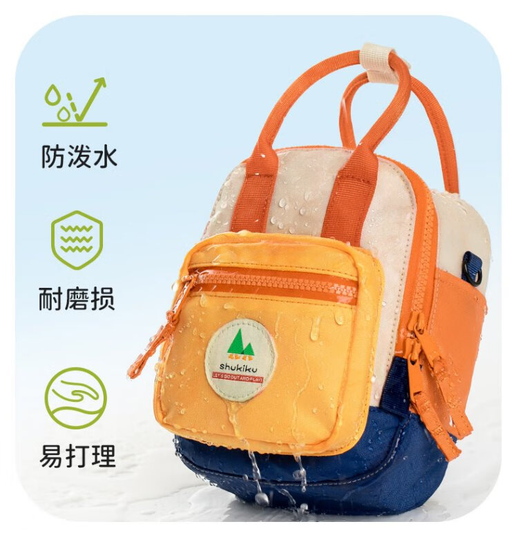 SHUKIKU sugar cube multifunctional mini bag children's outdoor water-repellent backpack crossbody bag portable travel bag classic orange red