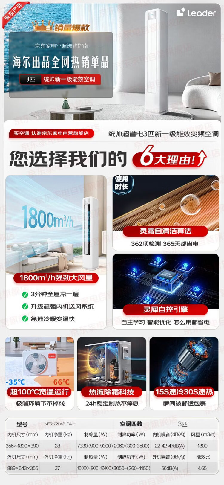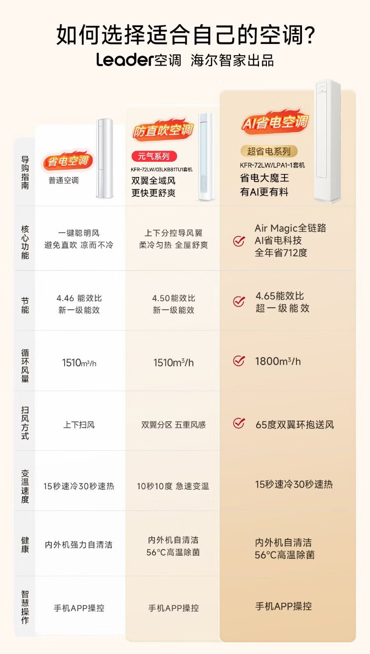 Haier produces Tongshuai air conditioner 3-horsepower cabinet machine, super power-saving new product, super first-level frequency conversion energy-saving vertical trade-in KFR-72LW/LPA1-1