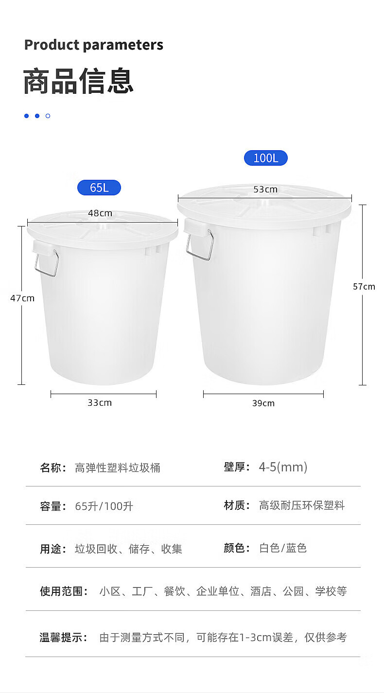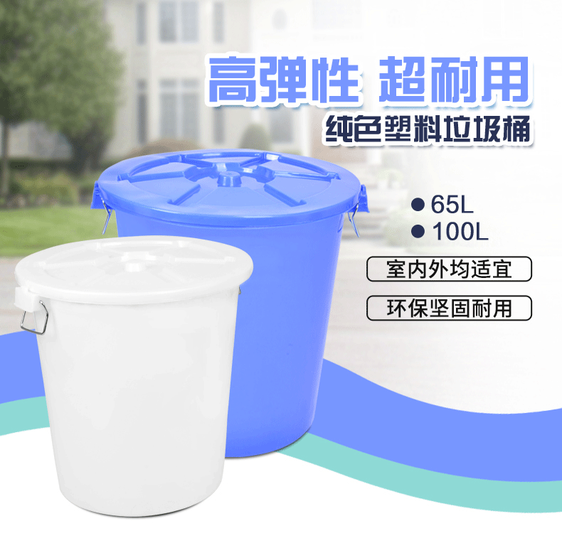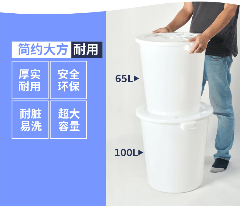 Supercloud large bucket plastic water storage bucket with lid hotel sanitation property trash can large white bucket 200L white