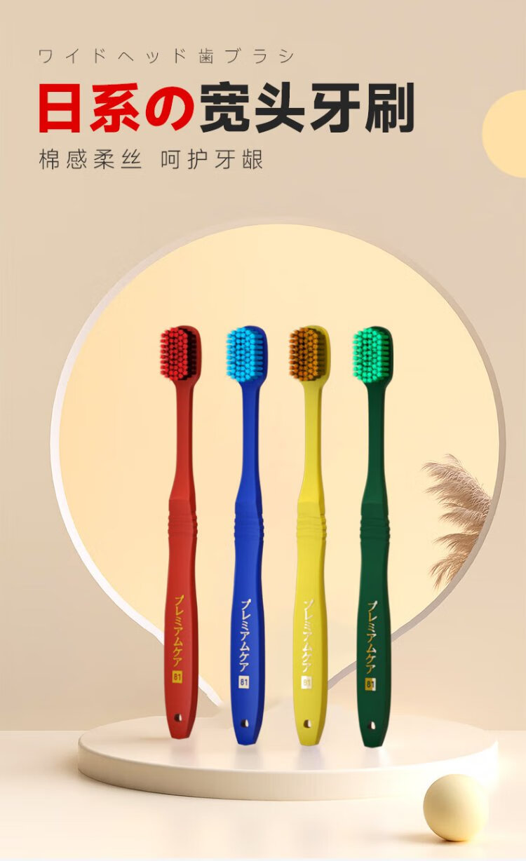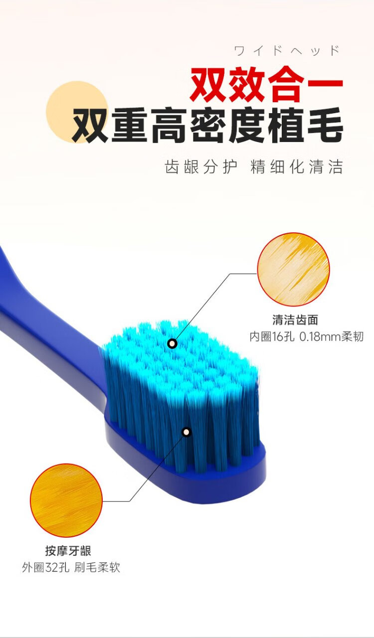 Jian wide-head toothbrush with soft bristles for adults, household high-end toothbrushes, 10 pieces (random color)
