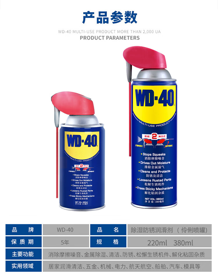 WD-40 multi-purpose metal curing agent/rust removal oil/machinery anti-rust lubricant/dehumidification/elimination of abnormal noise/smart sprinkler model 86220SS 220ml 1 bottle