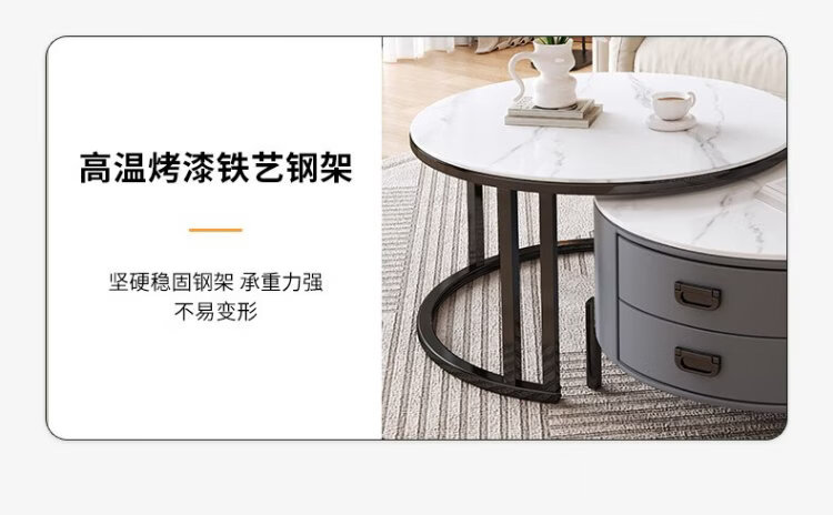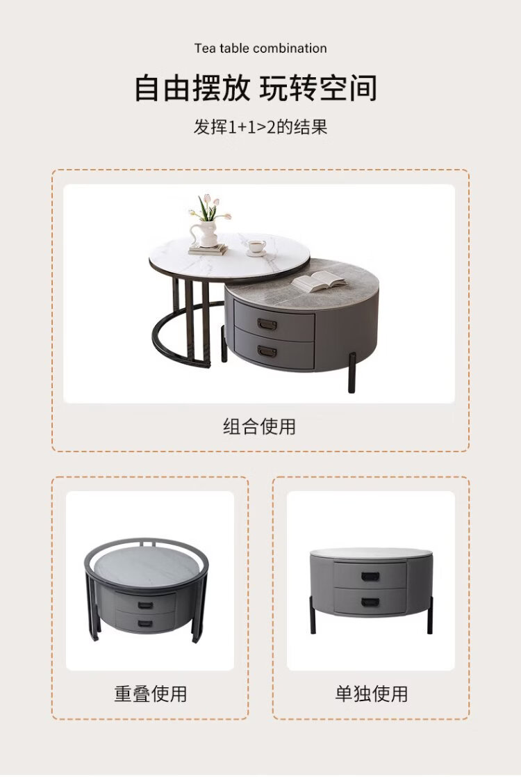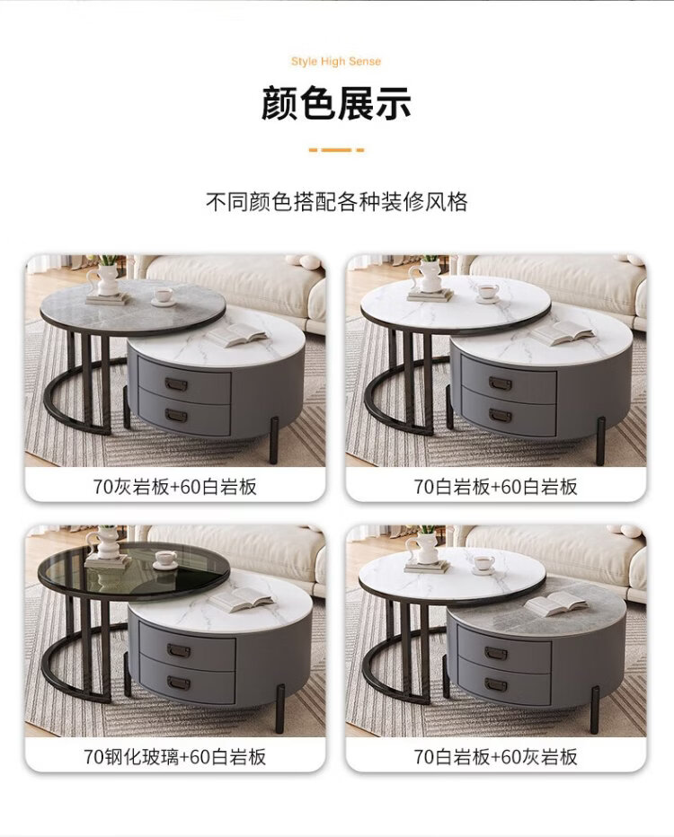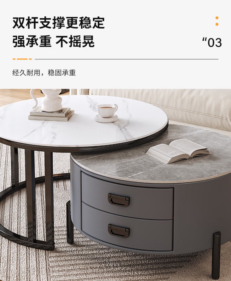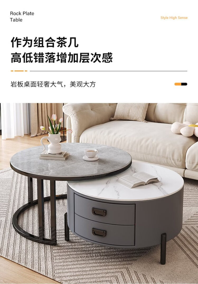 LUOSEN slate retractable coffee table double pole living room size round coffee table table 70 white 60 white