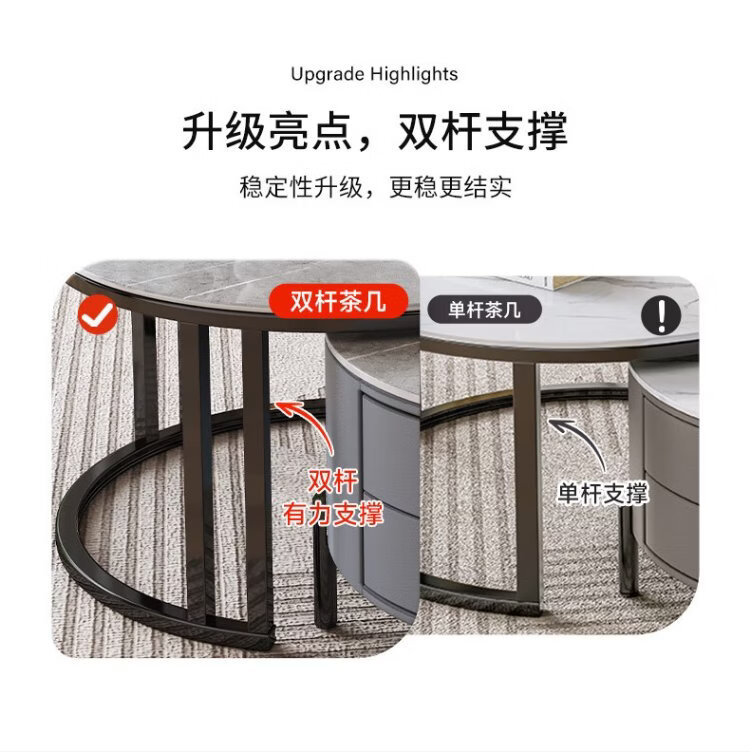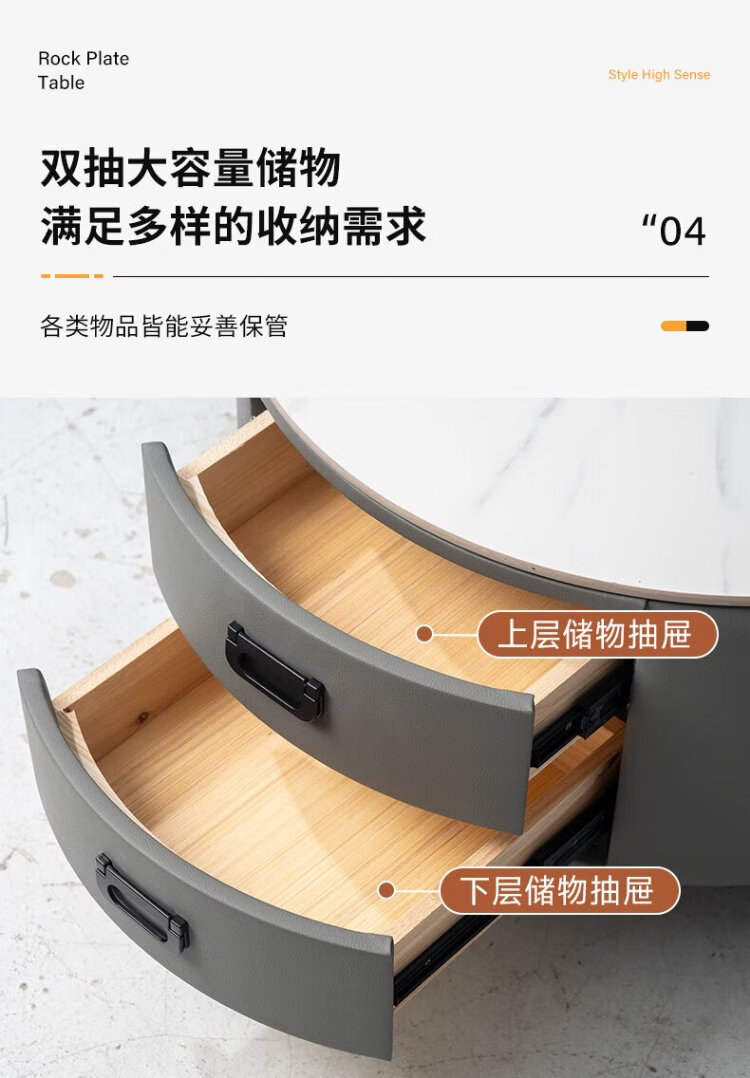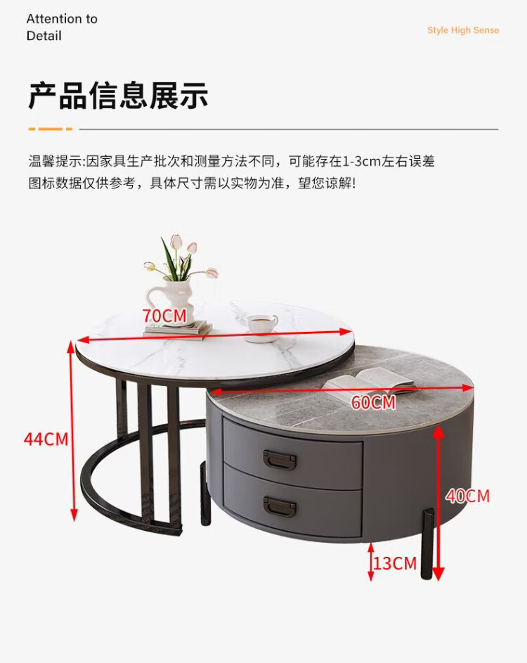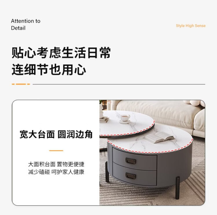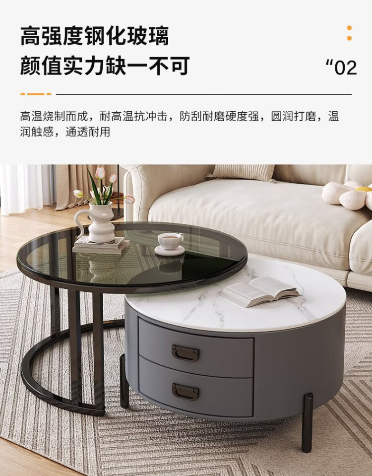LUOSEN slate retractable coffee table double pole living room size round coffee table table 70 white 60 white
