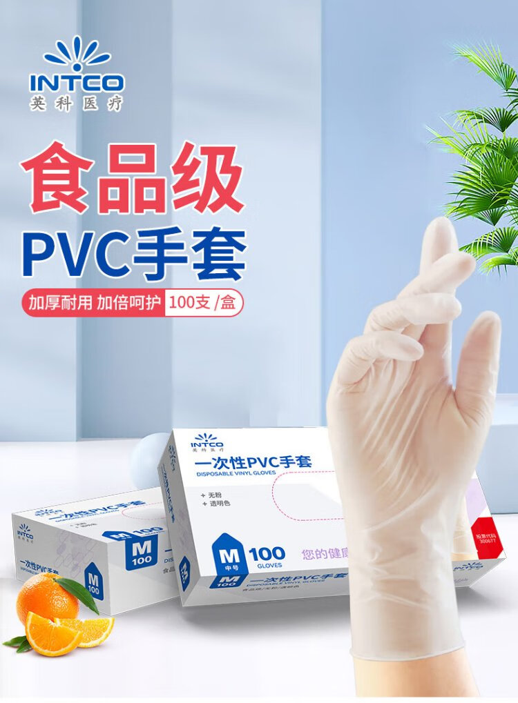 Yingke Medical Disposable PVC Gloves Dishwashing Housework Food Grade Gloves Thickened and Wear-Resistant L Size 100 Pcs/Box