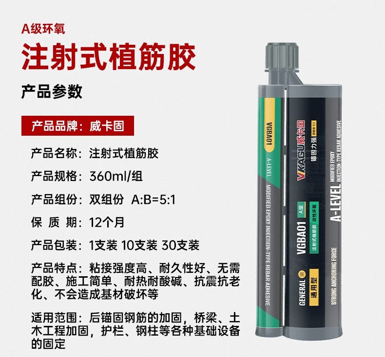 VIKAGU two-component epoxy injection gun for strong reinforcement of reinforced concrete resin planting glue VGBA01 360ml