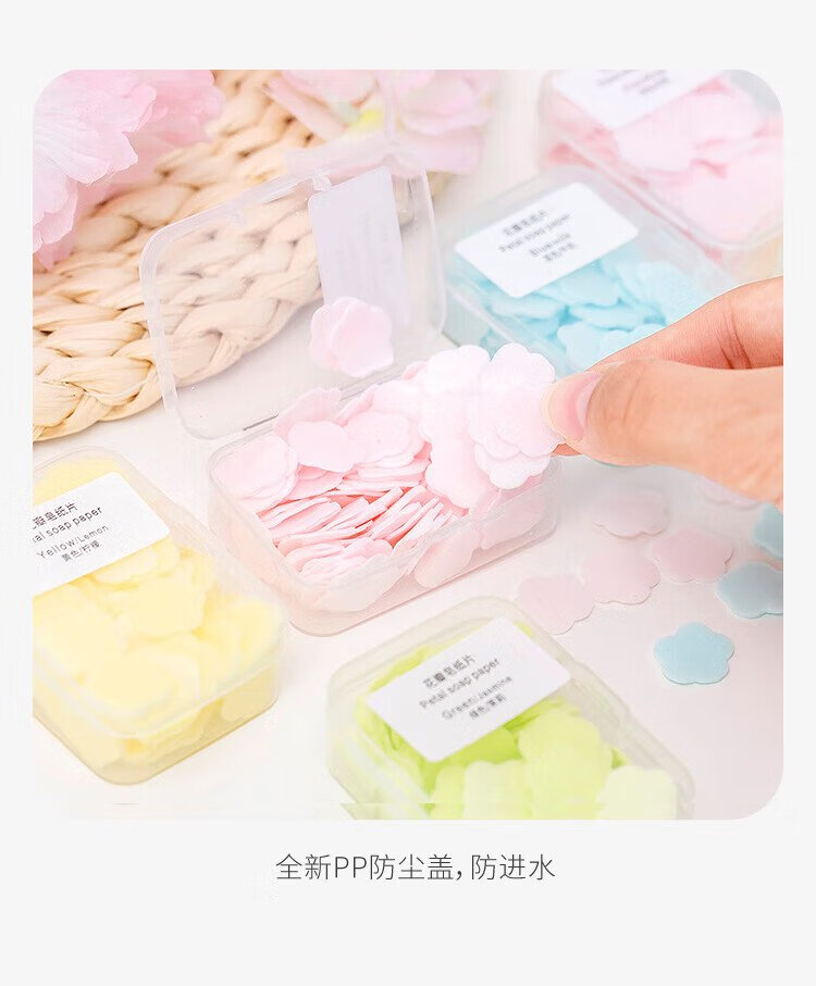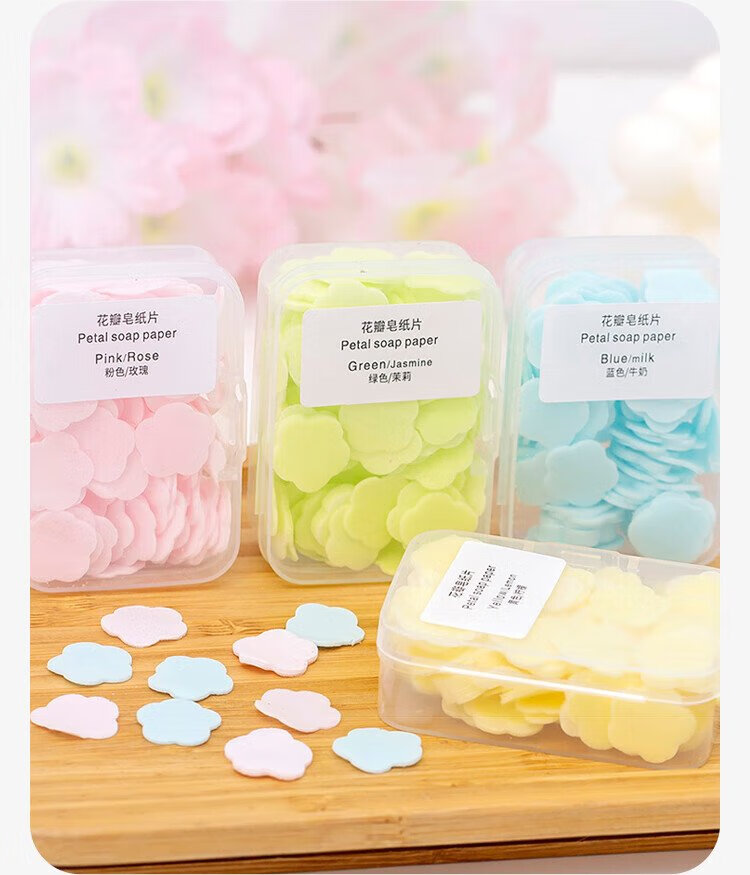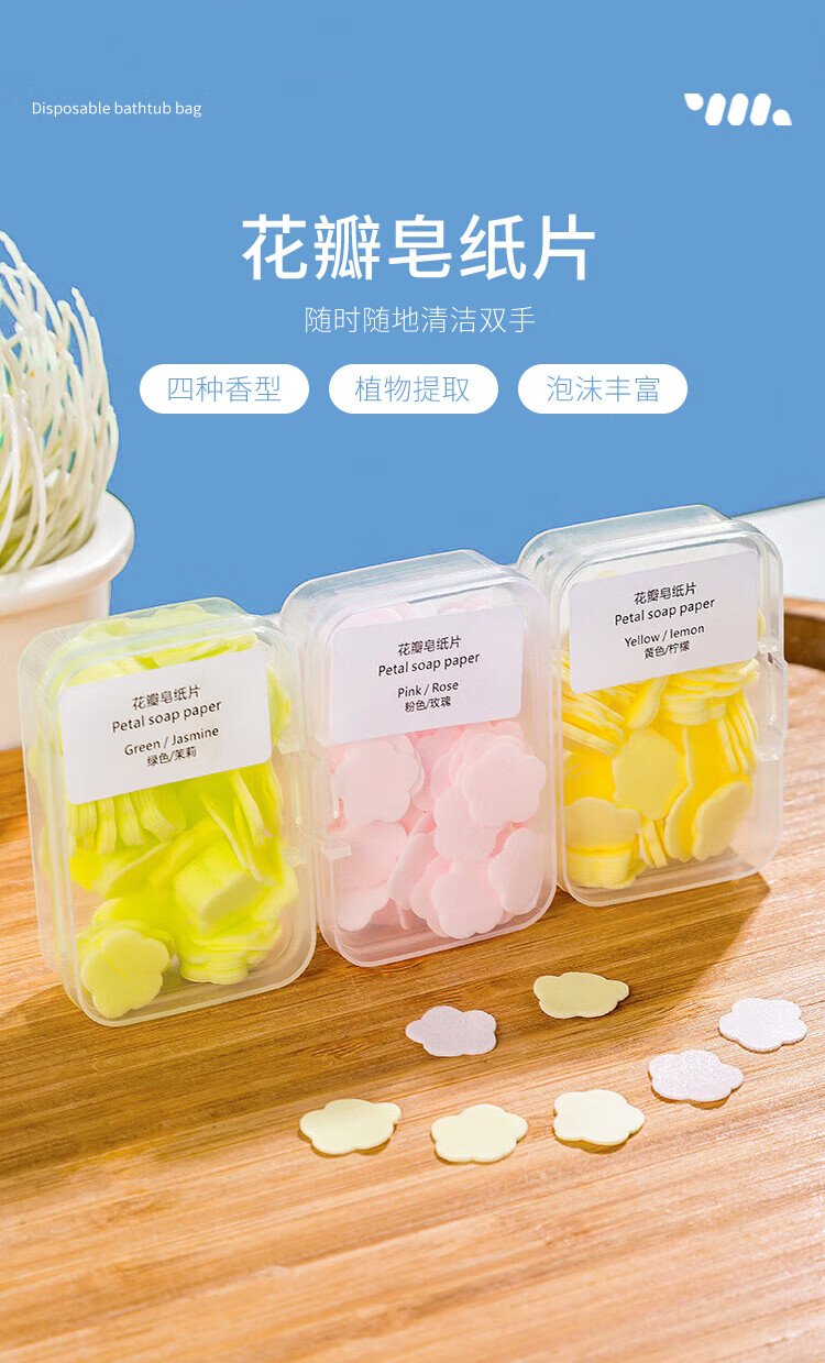 Xinqin petal soap tablets 4 boxes of disposable hand washing soap tablets children's hand washing tablets outdoor travel portable soap paper