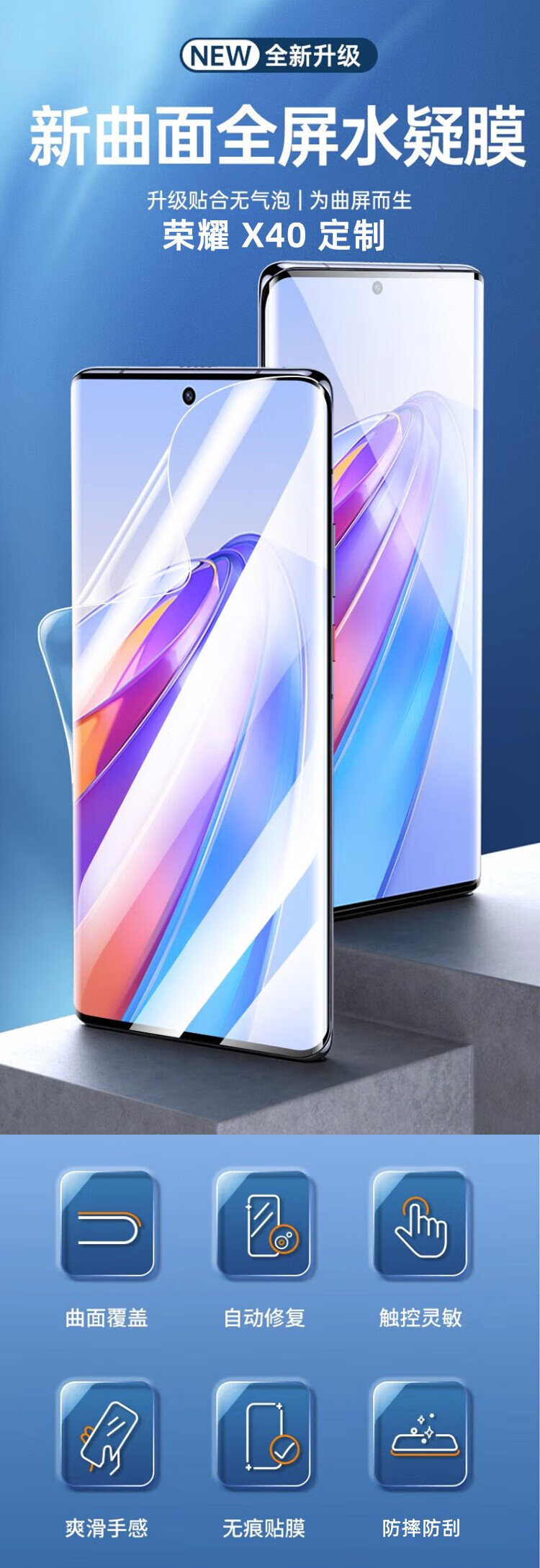 McCooqi suitable for Honor 70/60/60se/X40/Huawei nova10 non-tempered hydrogel film, anti-scratch high-definition curved surface covering, anti-fingerprint and anti-fall protective film, 2 pieces