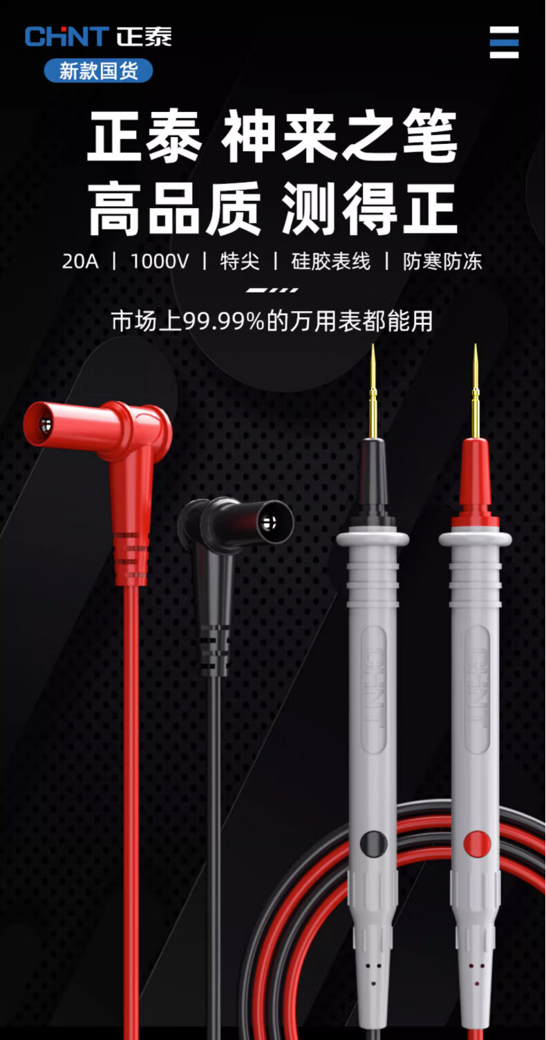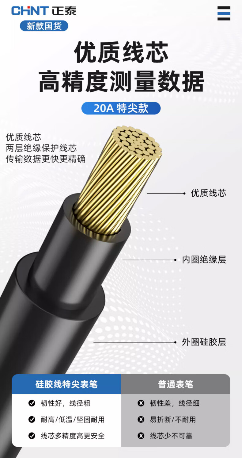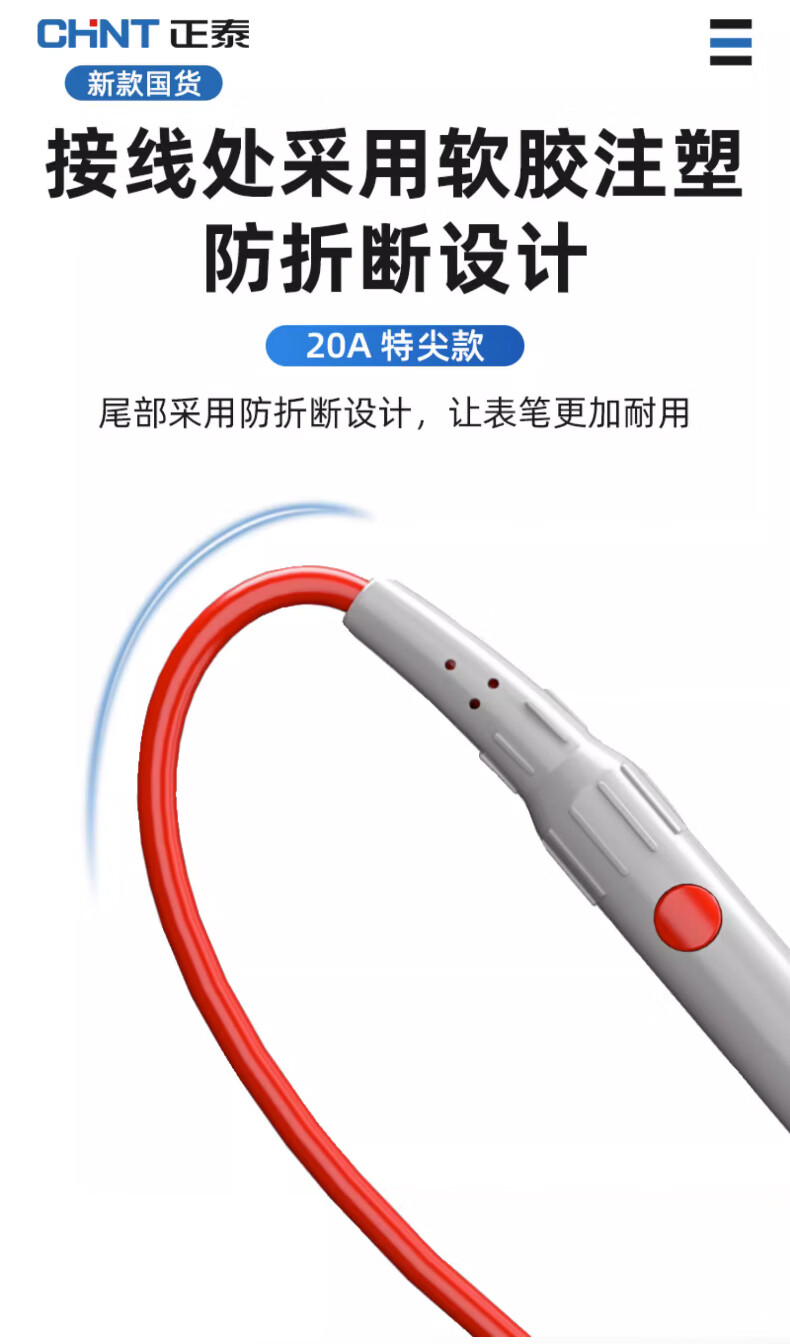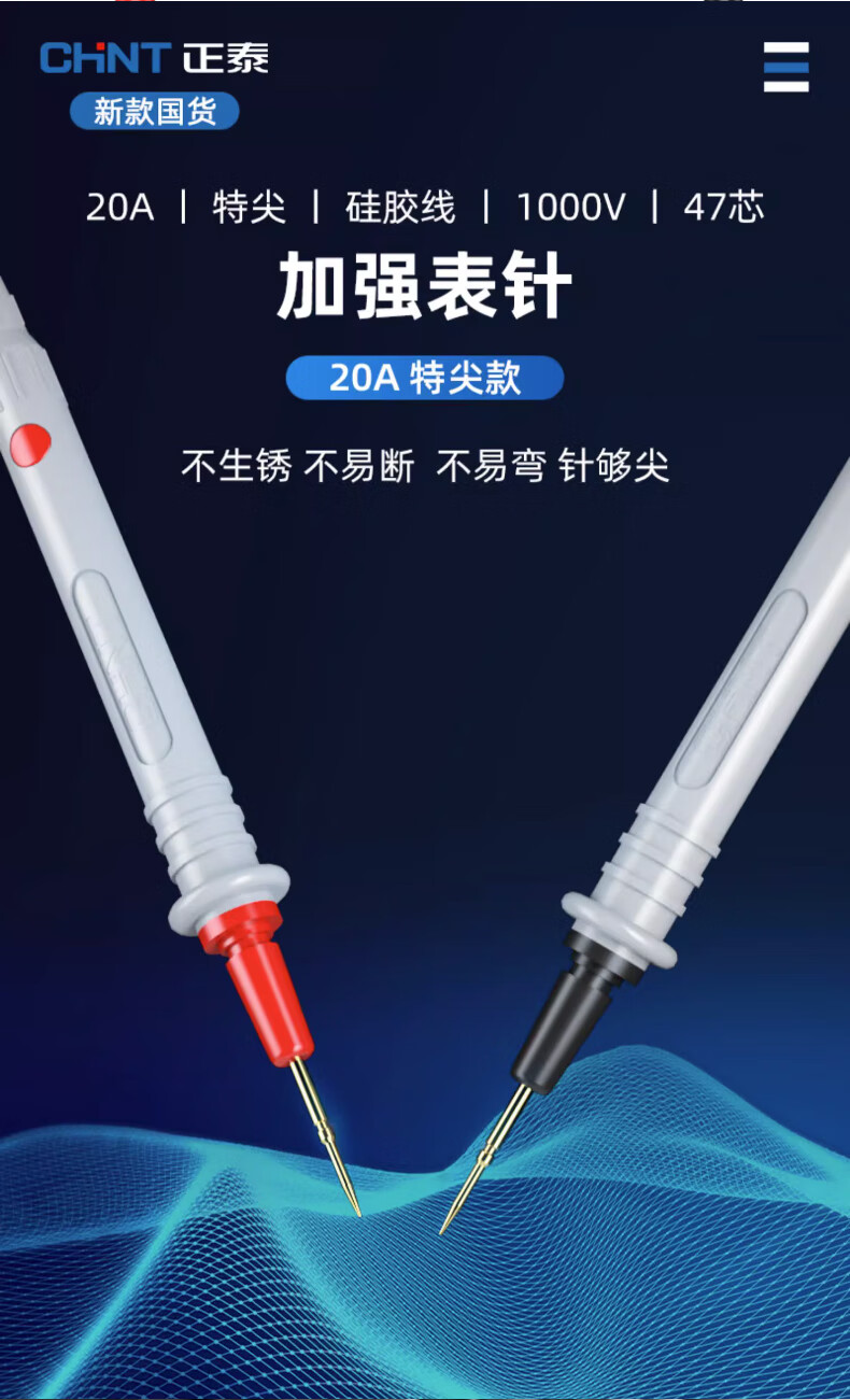 Chint (CHNT) multimeter all-copper test pen universal test pen special tip steel probe rod silicone wire anti-freeze universal meter accessories