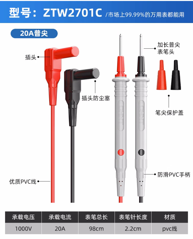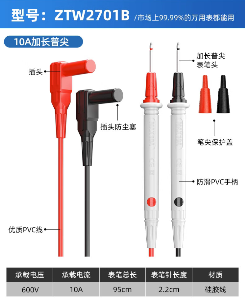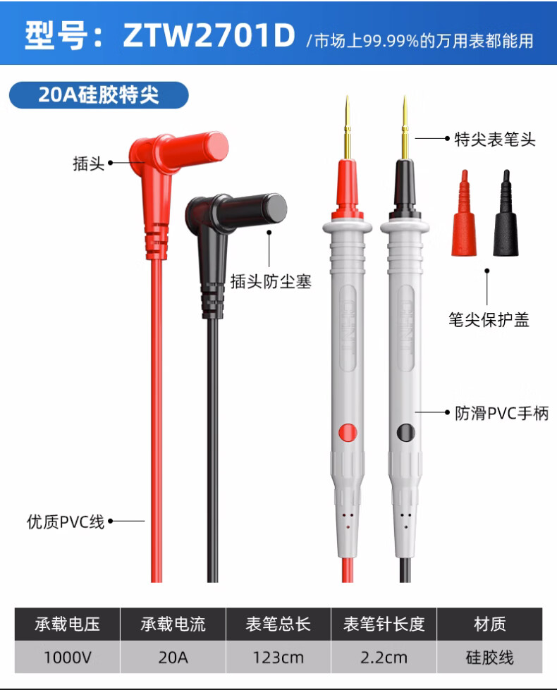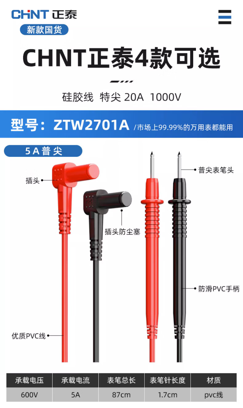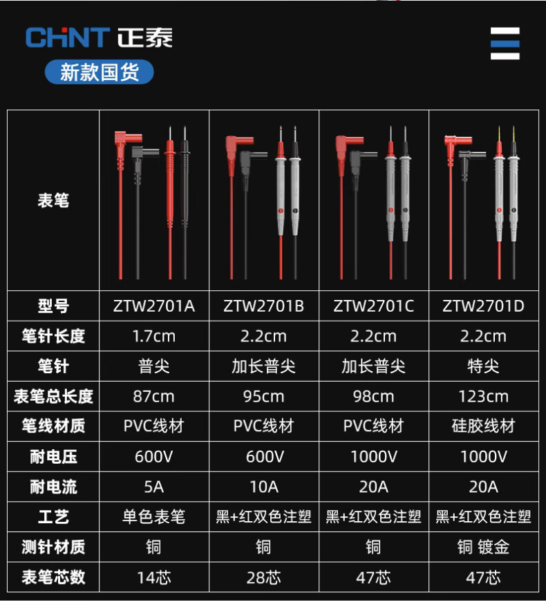 Chint (CHNT) multimeter all-copper test pen universal test pen special tip steel probe rod silicone wire anti-freeze universal meter accessories