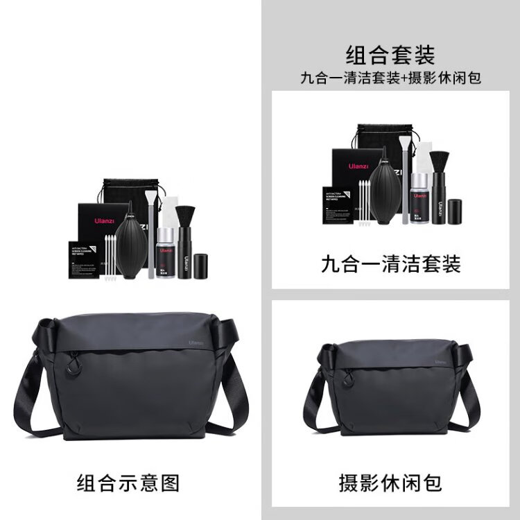 Ulanzi excellent basket PB008 waterproof shoulder camera bag + nine-in-one camera cleaning set portable leisure bag Canon Nikon crossbody photography bag