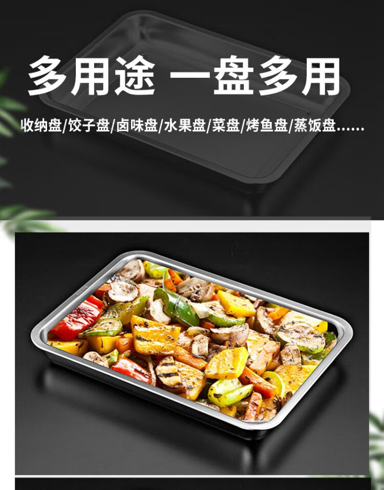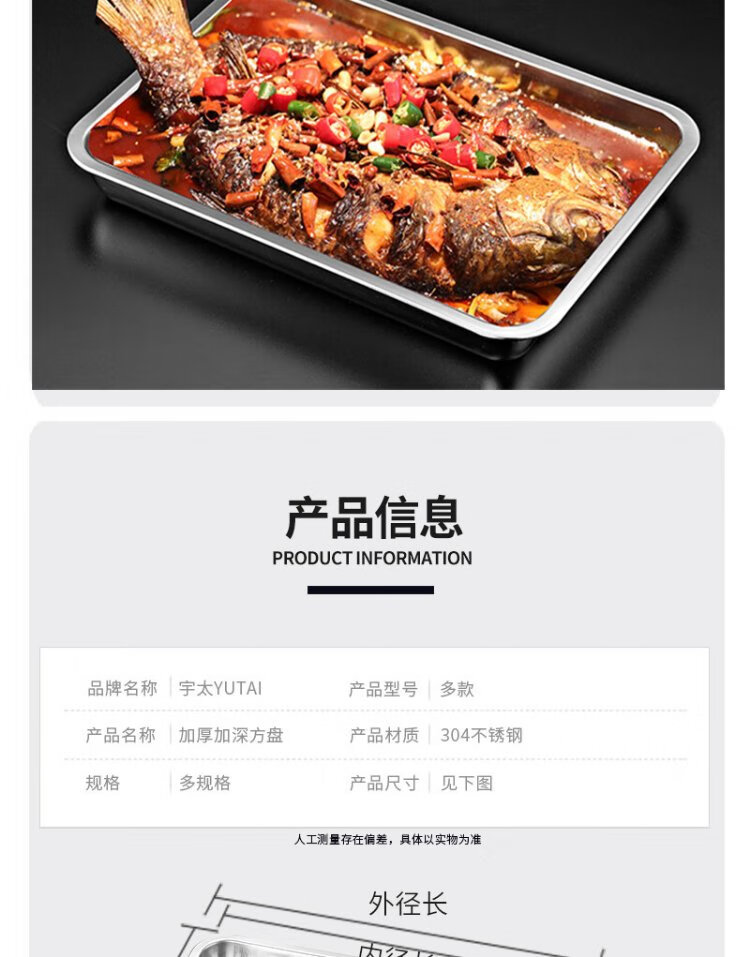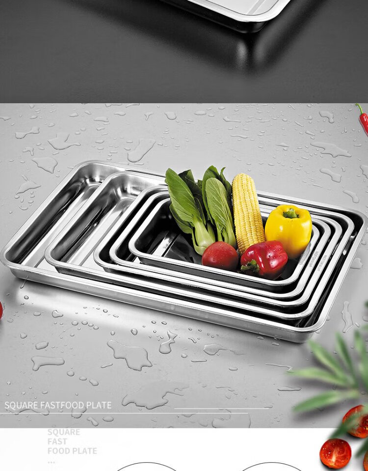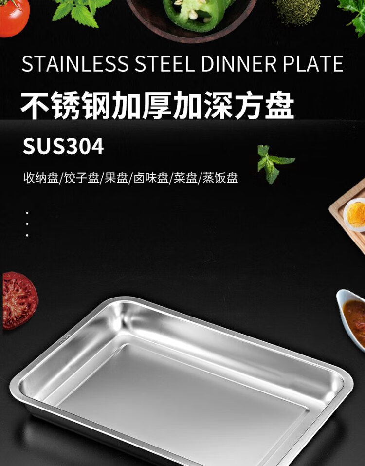 YUTAI 304 stainless steel tray rectangular plate household square plate dinner plate grilled fish iron plate steaming plate 3627