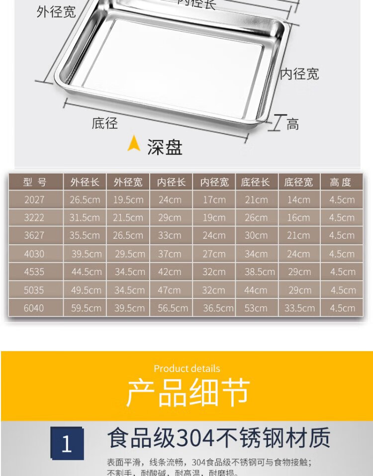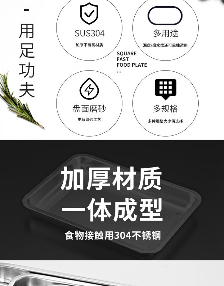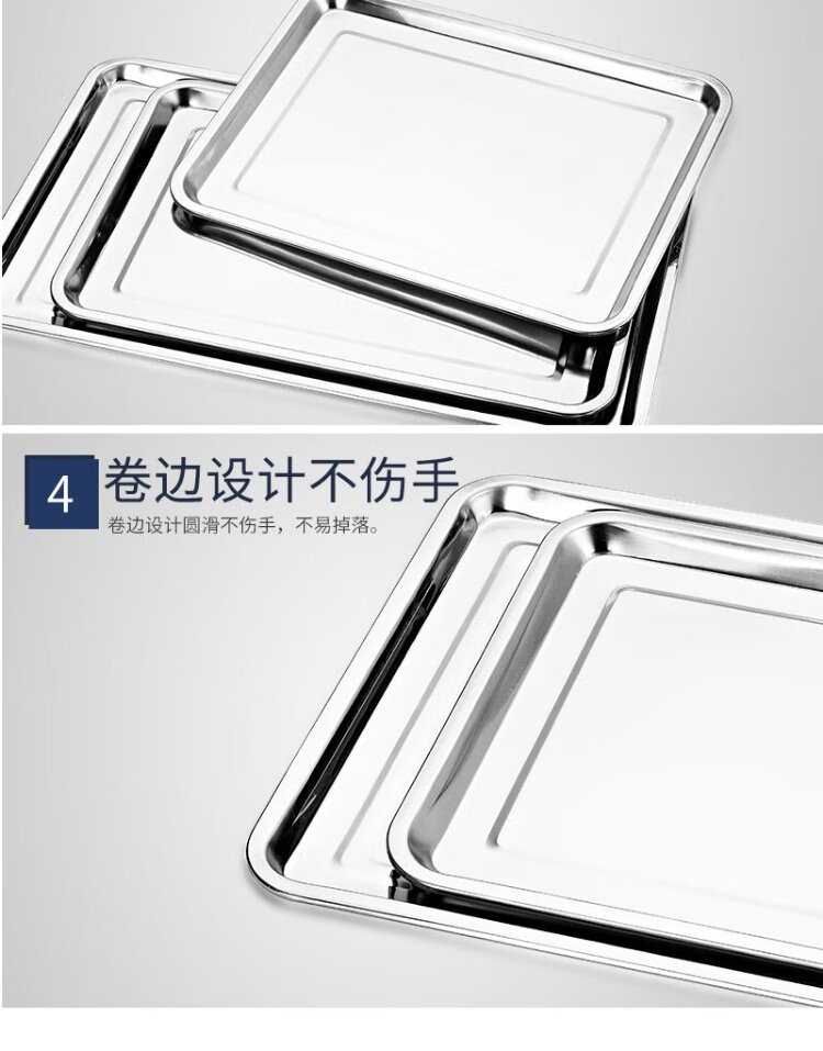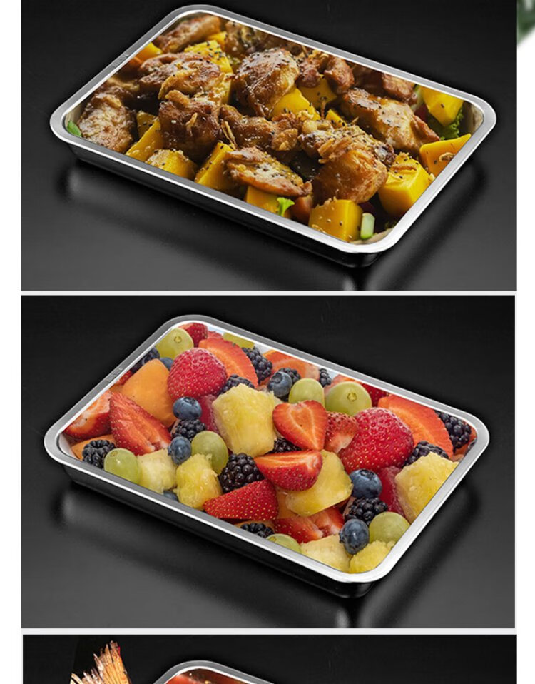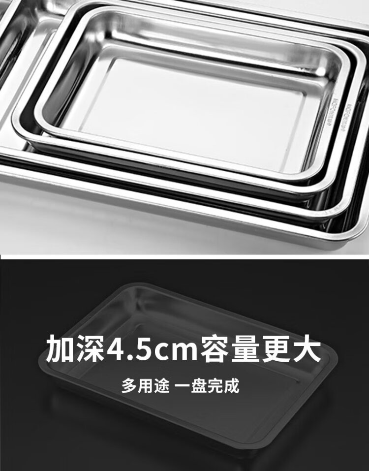 YUTAI 304 stainless steel tray rectangular plate household square plate dinner plate grilled fish iron plate steaming plate 3627