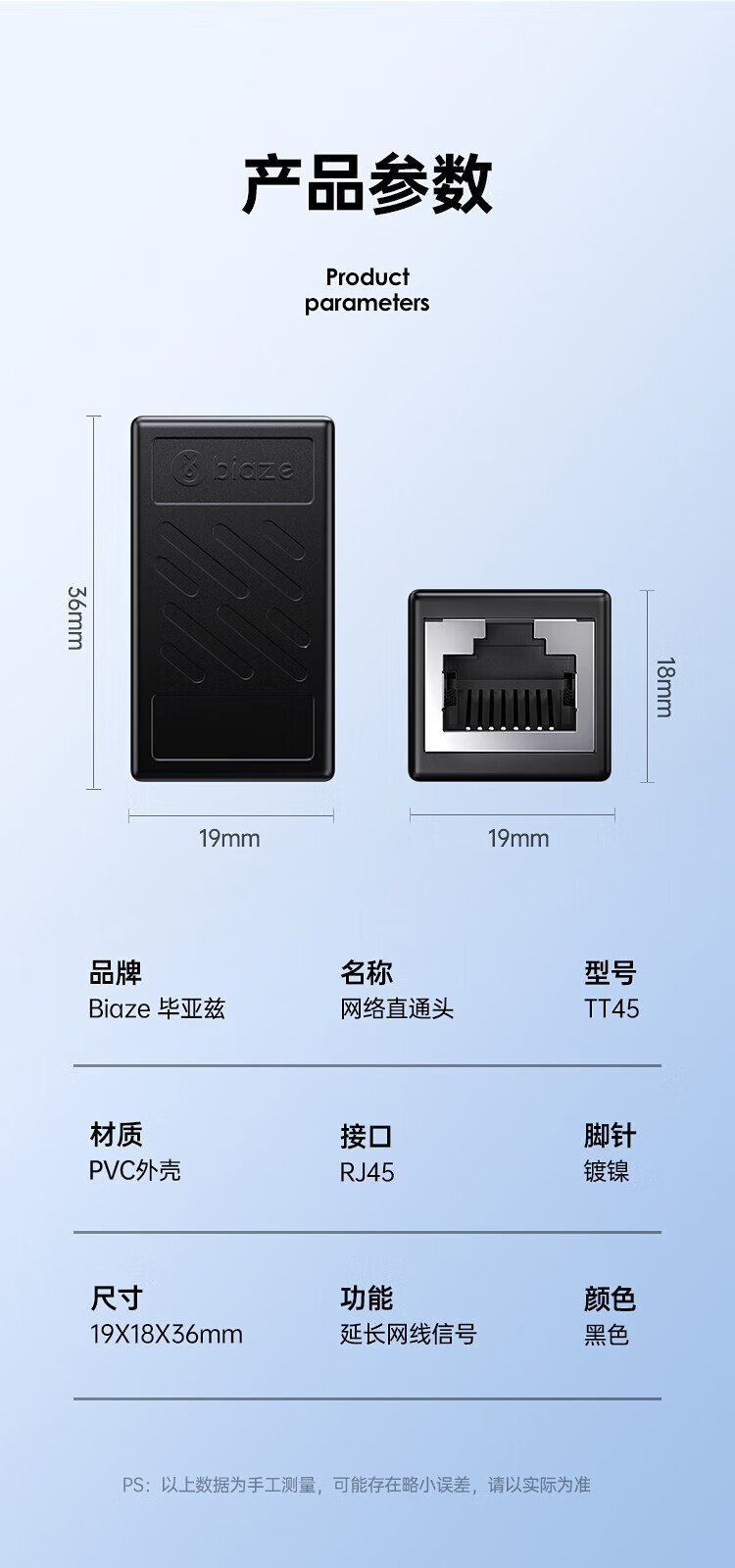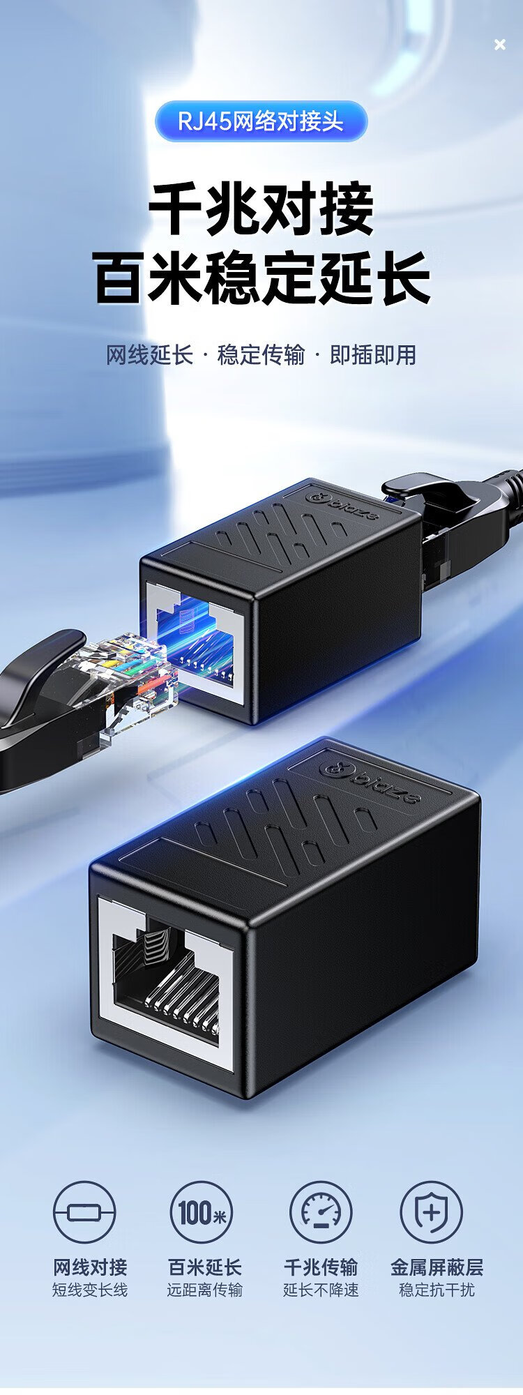 Biaz network cable adapter butt connector network straight-through head RJ45 network port connector double-pass head module network cable extender 8P8C 10 pieces