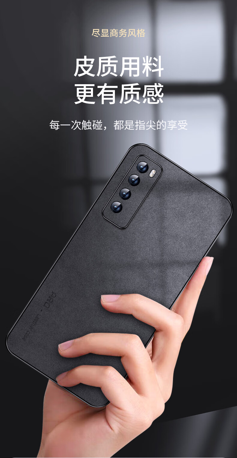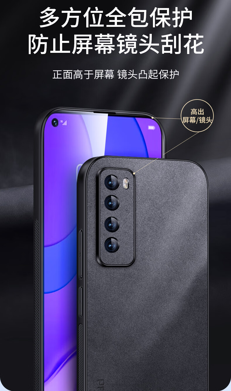 Shang Su is suitable for Huawei nova7 mobile phone case, nova 7 protective cover, anti-fall lens, all-inclusive soft shell, simple and light luxury lambskin silicone shell, women's and men's leather case black