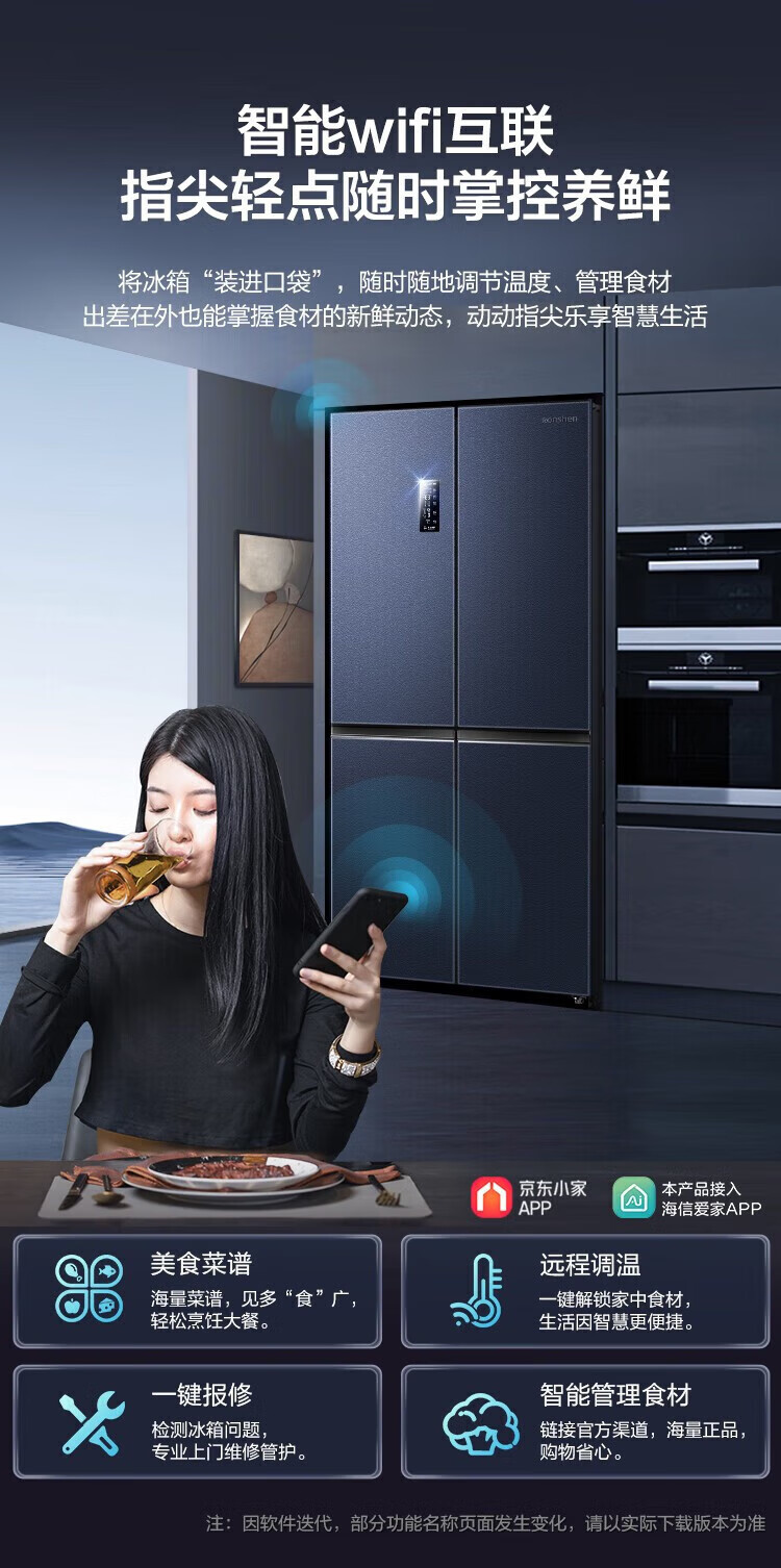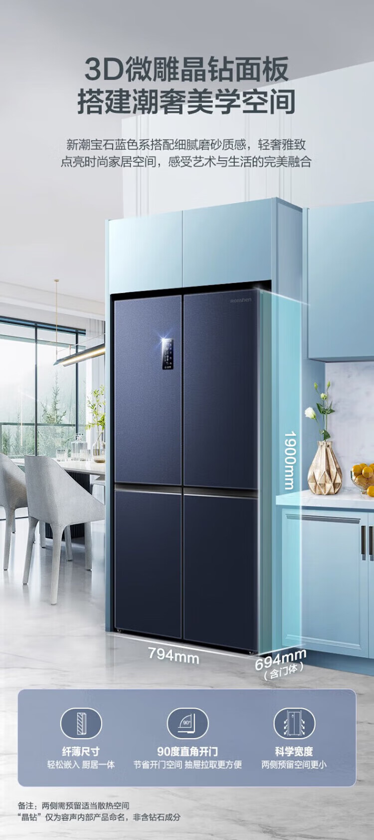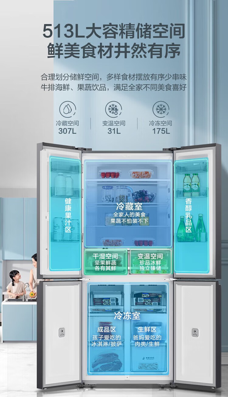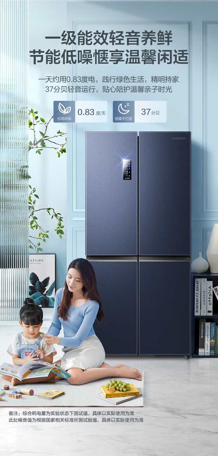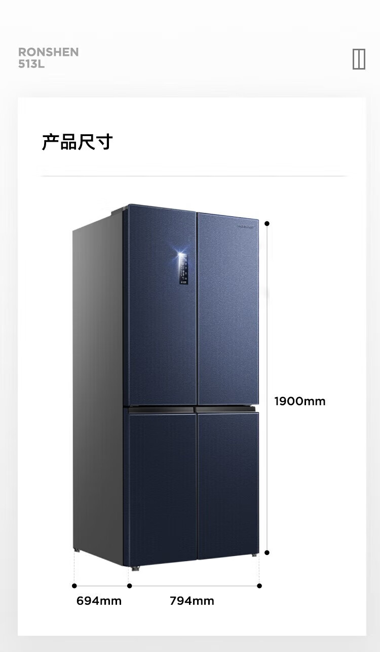 Ronshen 513 liter cross-fold four-door thin built-in refrigerator first-class energy efficiency dual system frequency conversion large capacity energy-saving frost-free national subsidy 20% BCD-513WD17FP