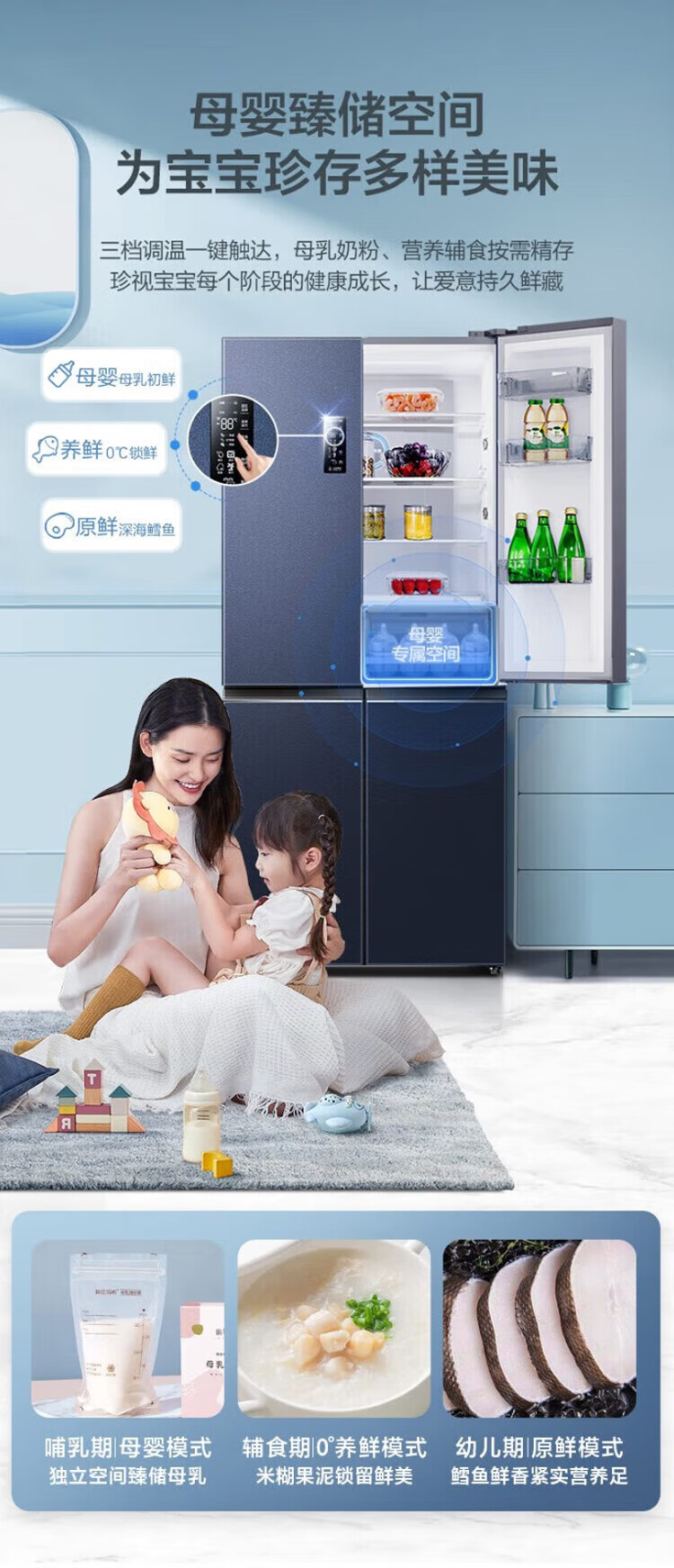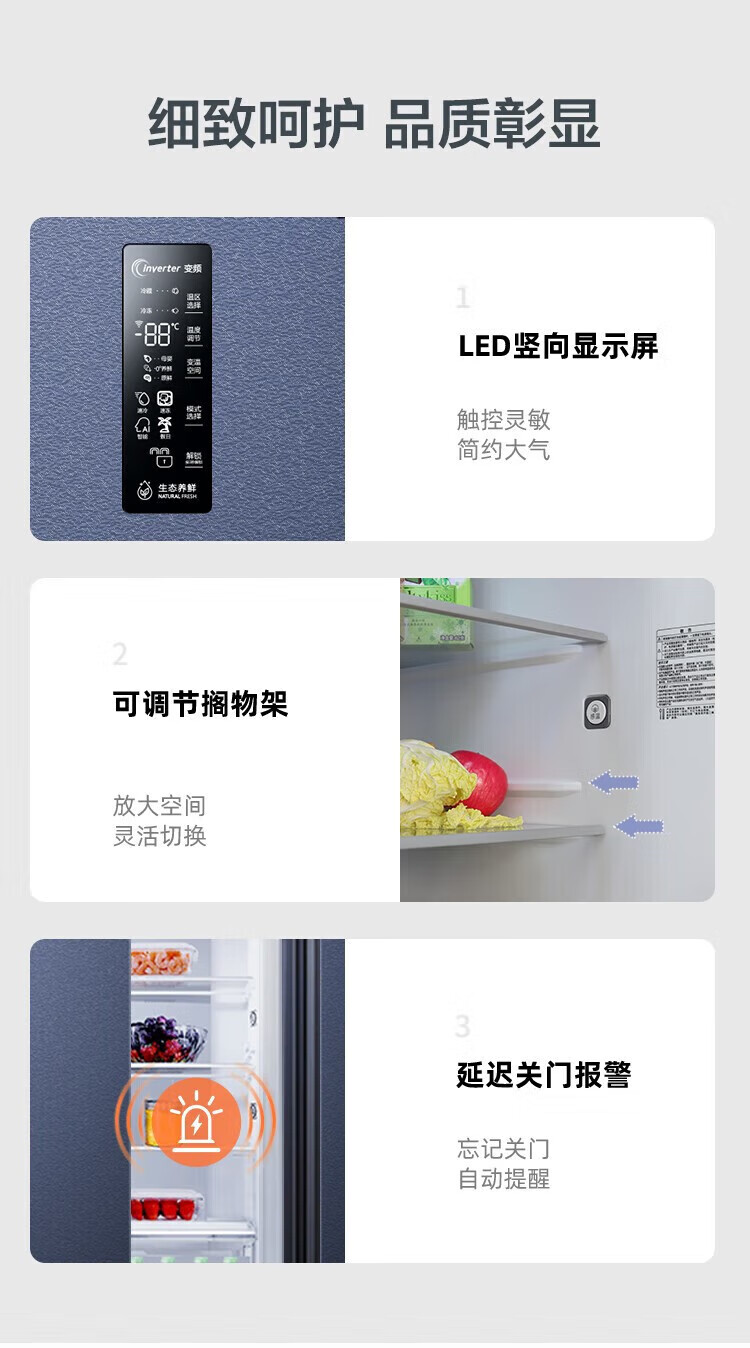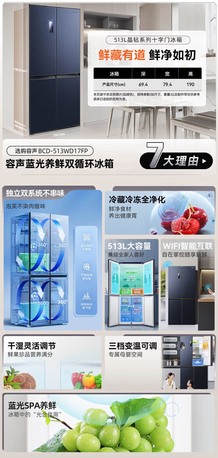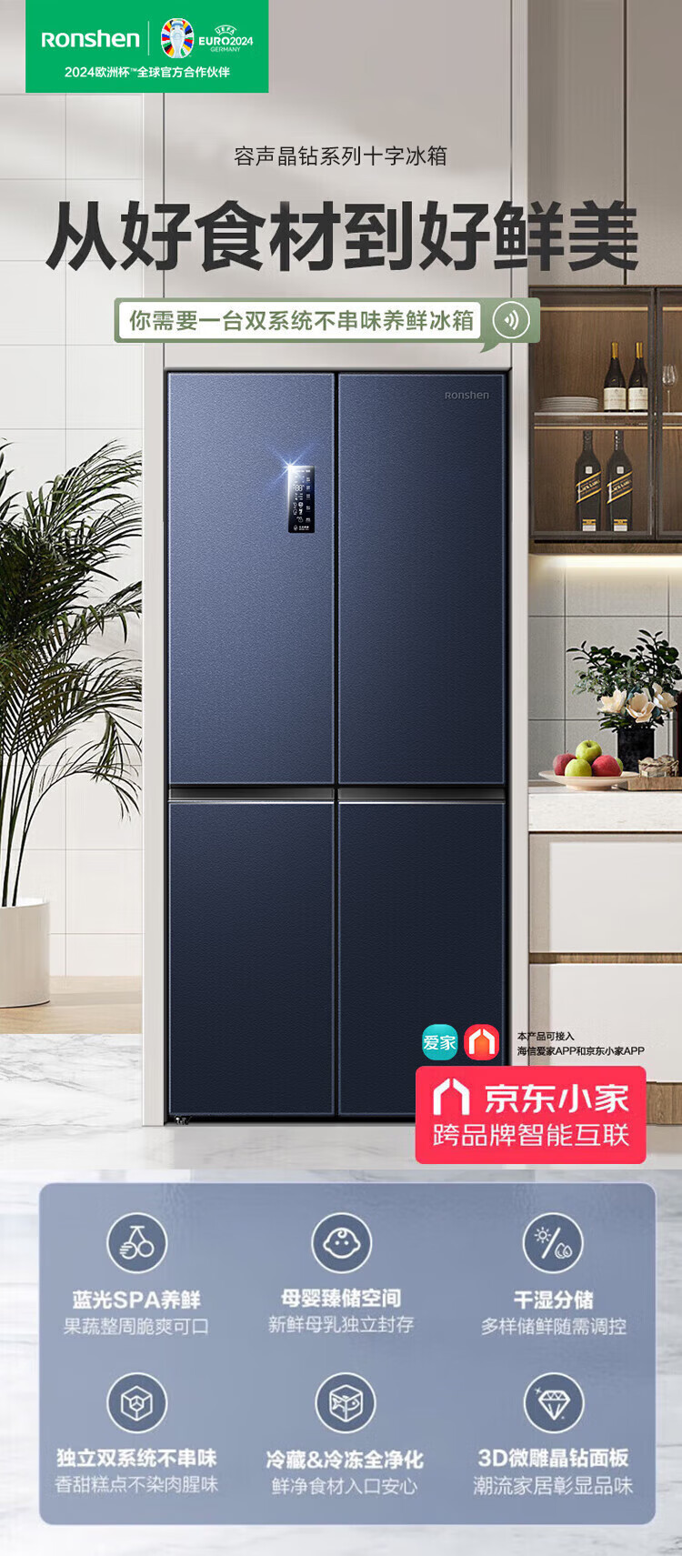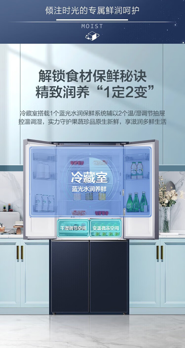 Ronshen 513 liter cross-fold four-door thin built-in refrigerator first-class energy efficiency dual system frequency conversion large capacity energy-saving frost-free national subsidy 20% BCD-513WD17FP