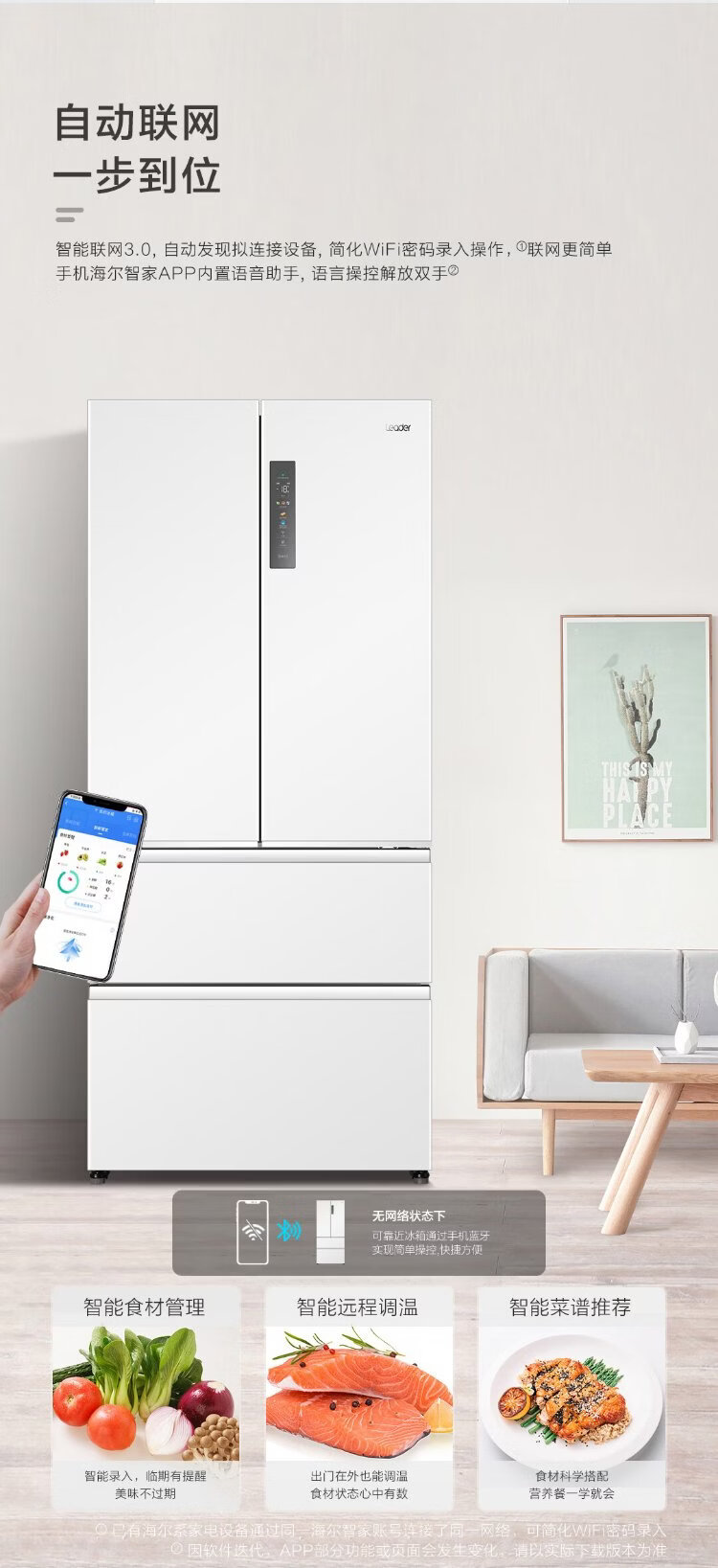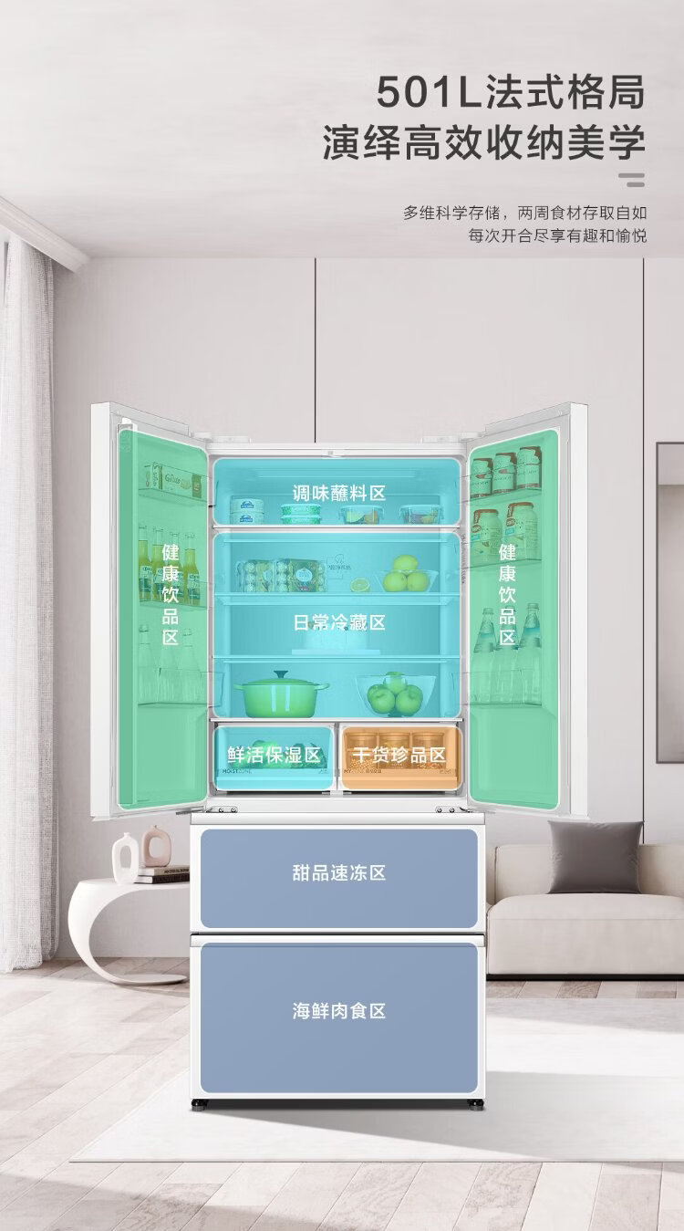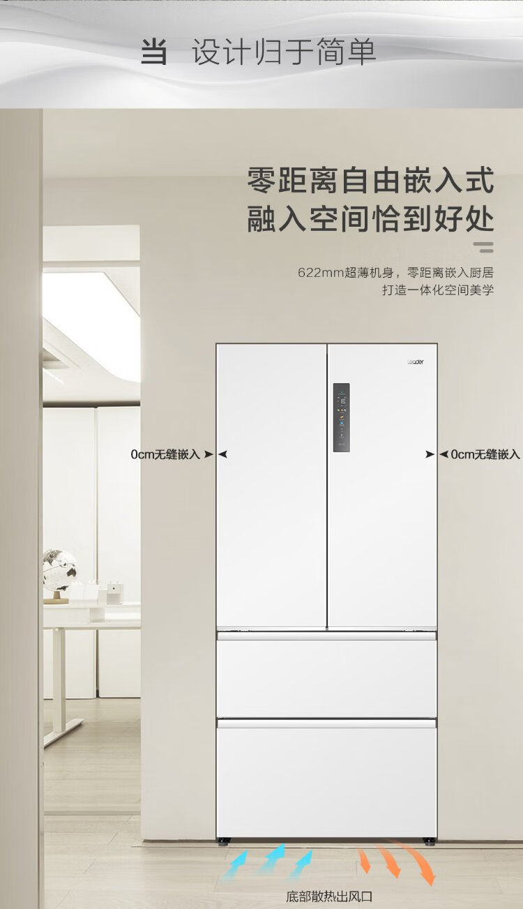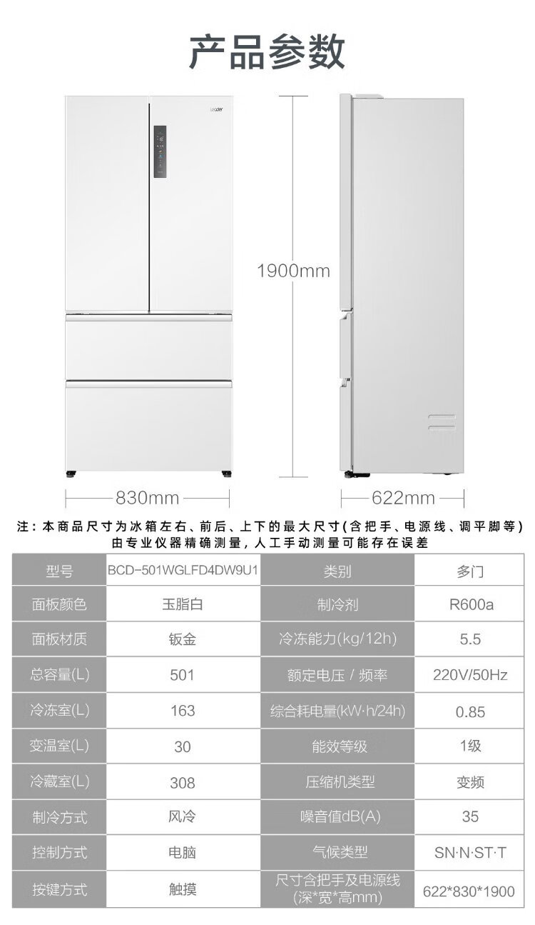 Leader Haier's Yuzhi White Series 501L French-style multi-door home mother and baby refrigerator with zero-embedded first-level energy efficiency BCD-501WGLFD4DW9U1 while supplies last, only returnable and non-exchangeable