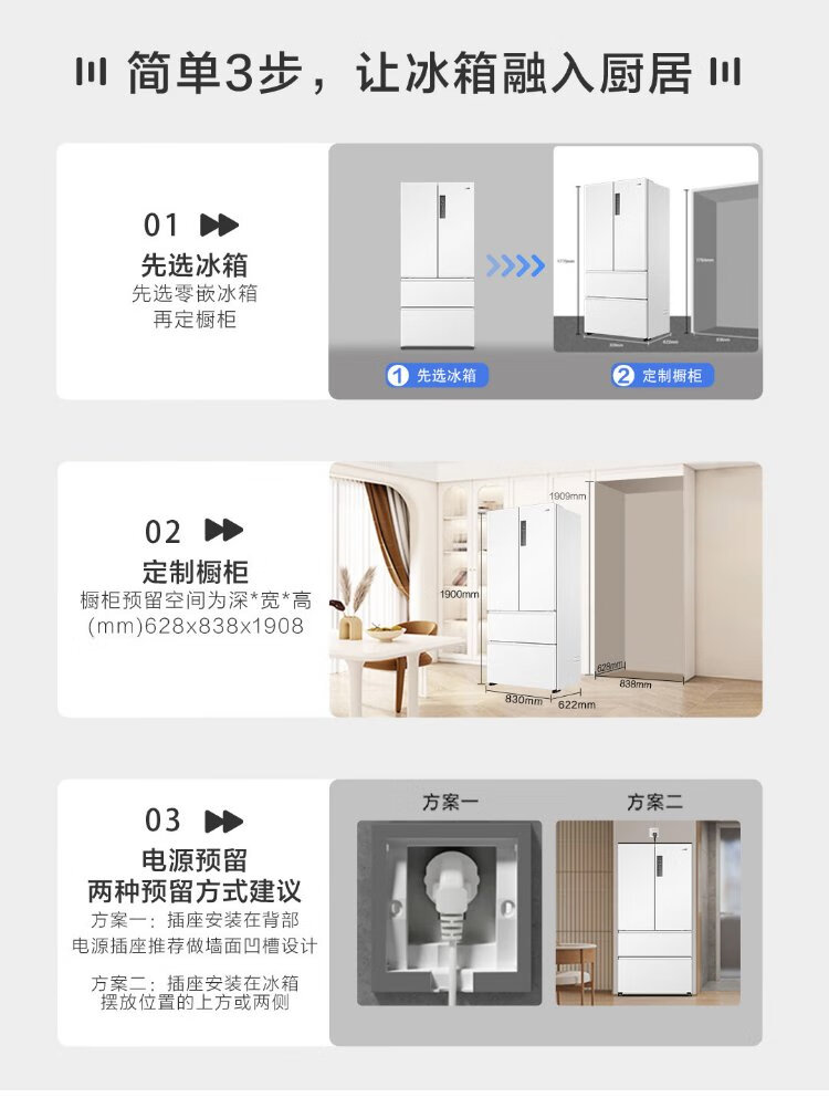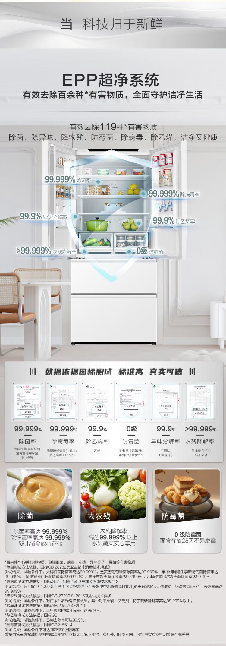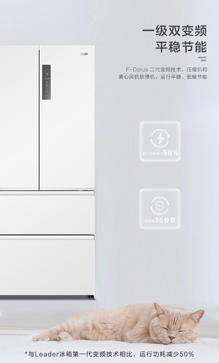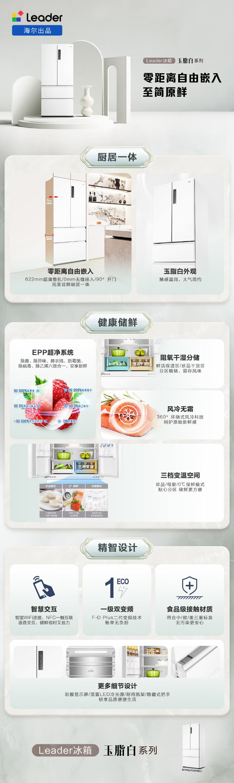 Leader Haier's Yuzhi White Series 501L French-style multi-door home mother and baby refrigerator with zero-embedded first-level energy efficiency BCD-501WGLFD4DW9U1 while supplies last, only returnable and non-exchangeable