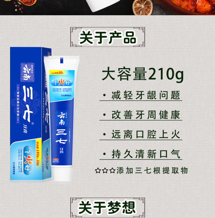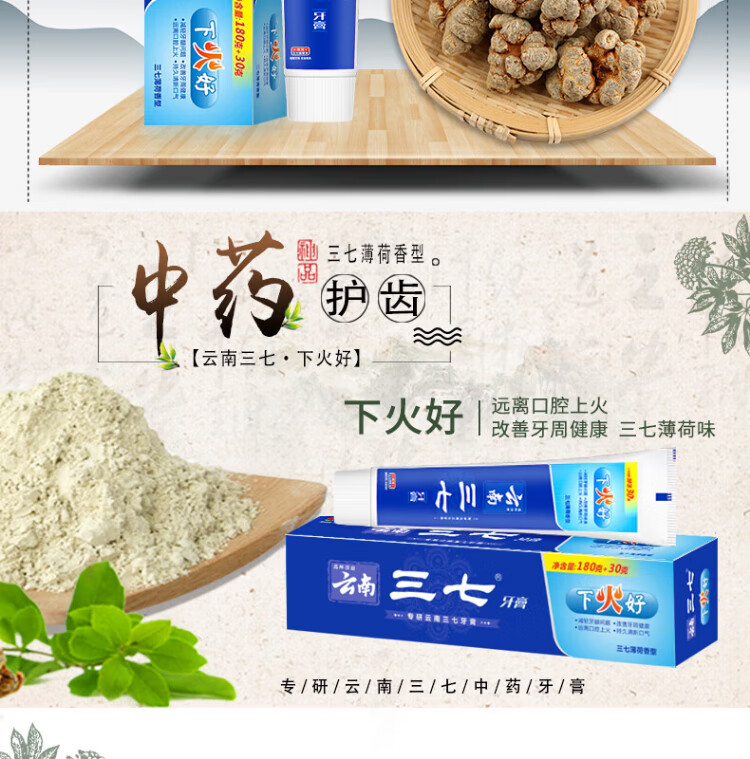 Notoginseng Xiahuo Good Toothpaste Notoginseng Mint Flavored Toothpaste + Toothbrush Double Pack (180g+30g)*3
