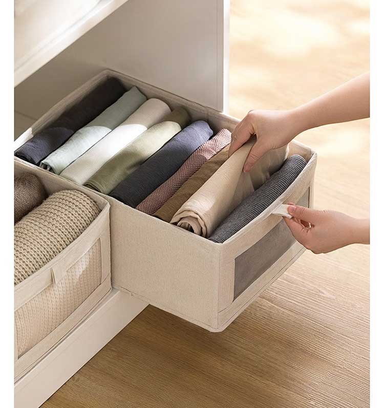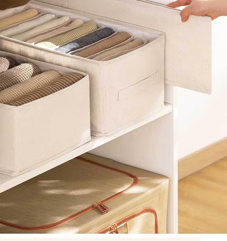 Camellia storage box clothes and pants storage box basket fabric underwear wardrobe storage folding layered finishing partition artifact 9 grids