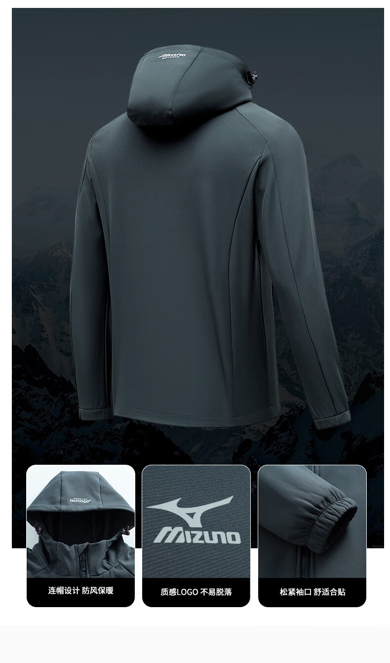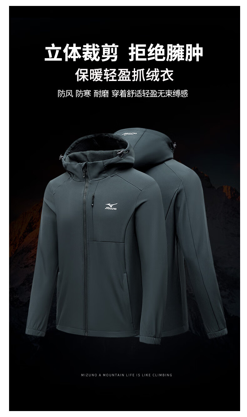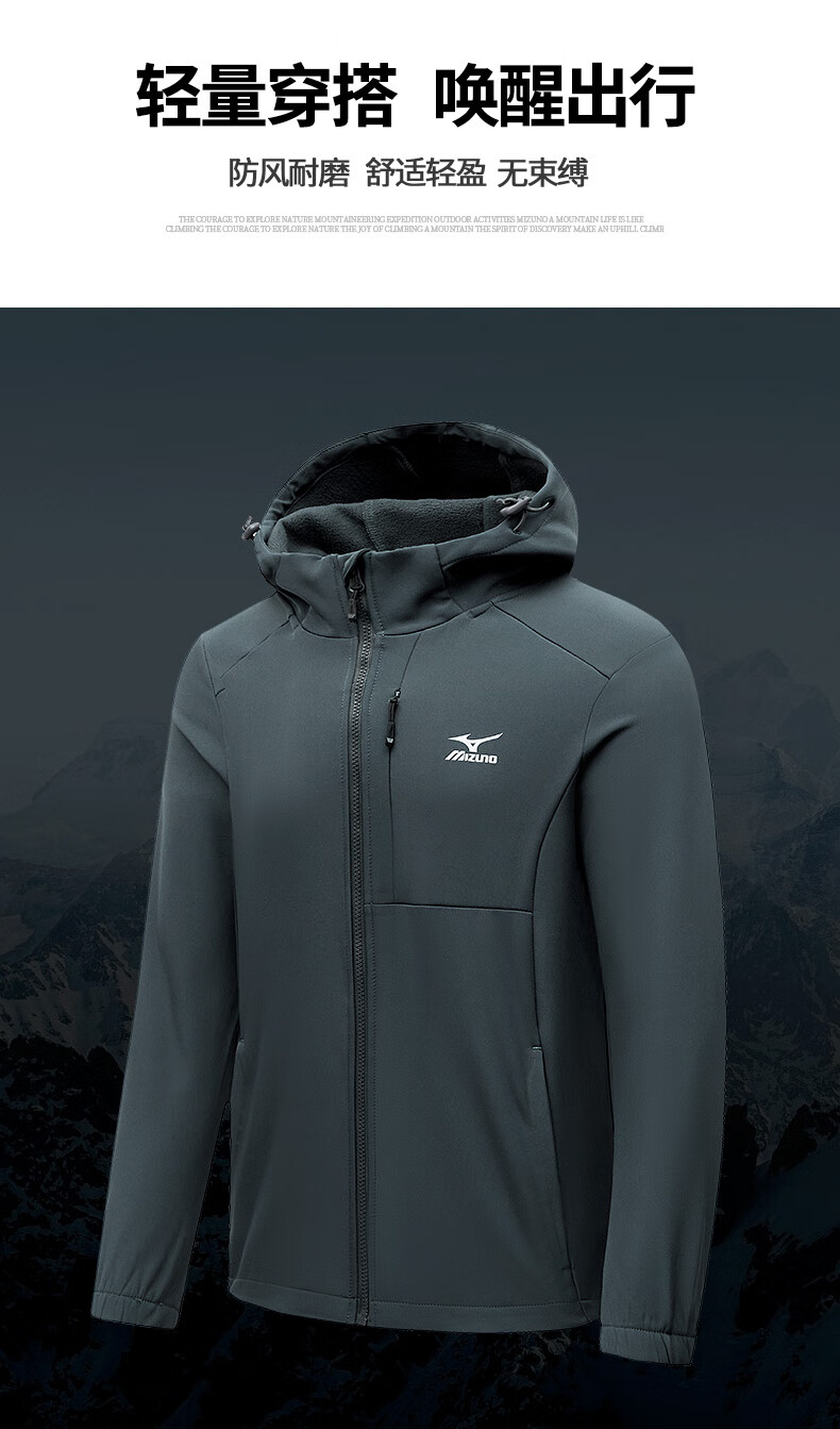 Mizuno (MIZUNO) soft shell jacket for men and women plus velvet large size outdoor jacket men's fleece jacket hooded windproof and warm