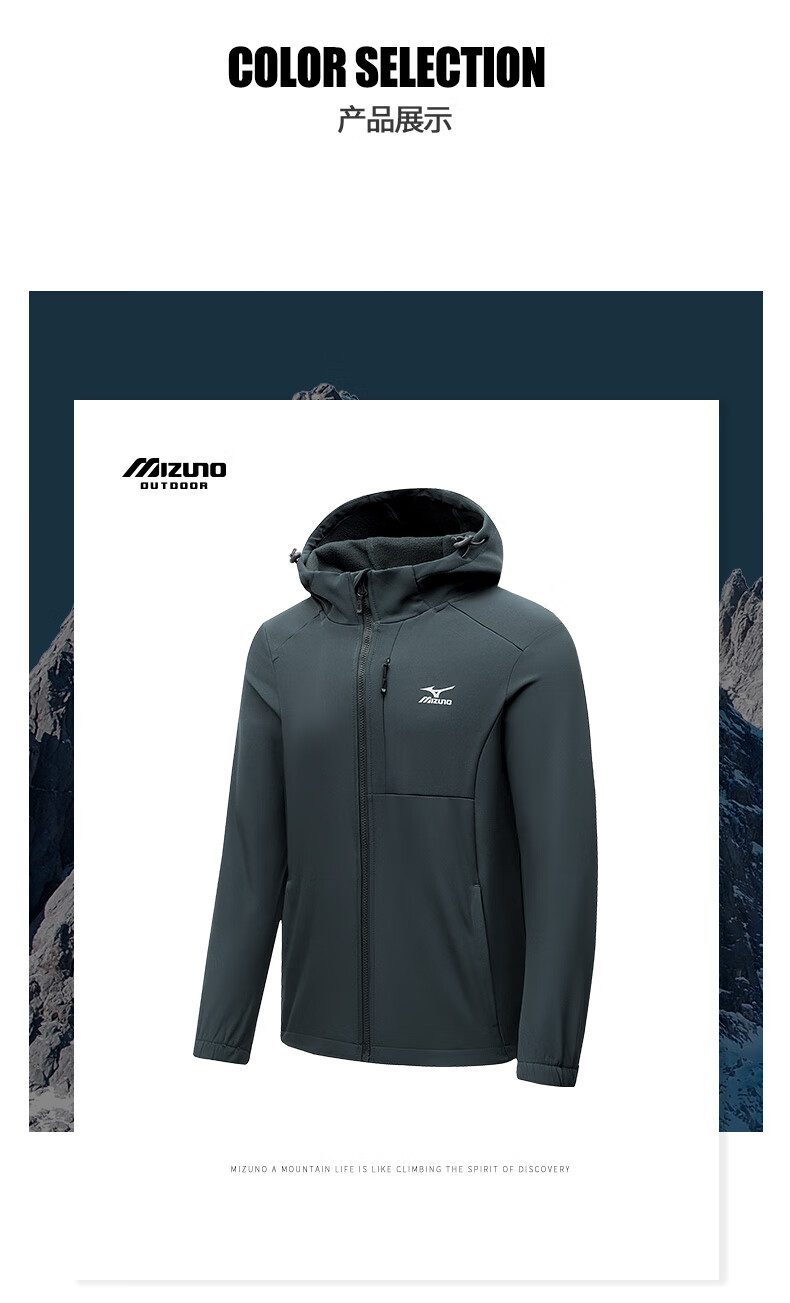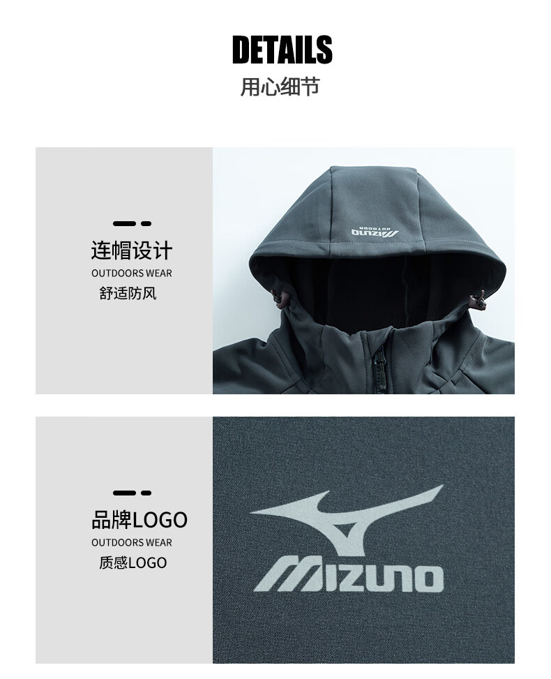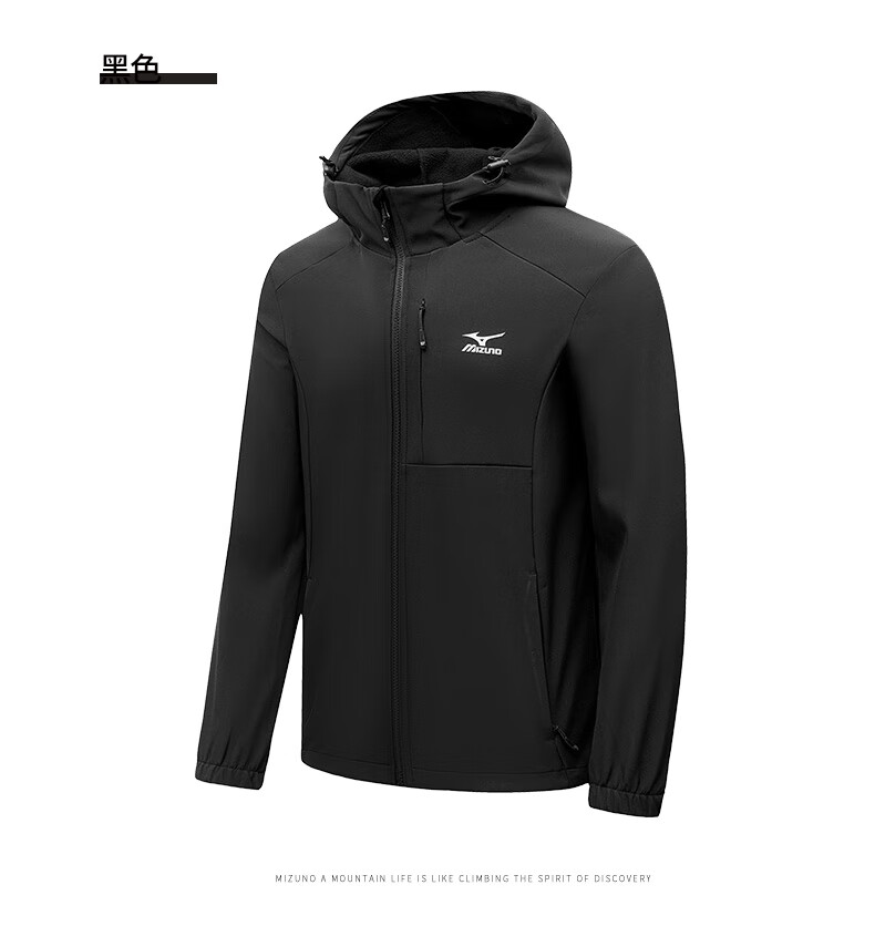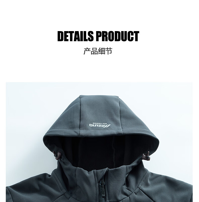 Mizuno (MIZUNO) soft shell jacket for men and women plus velvet large size outdoor jacket men's fleece jacket hooded windproof and warm