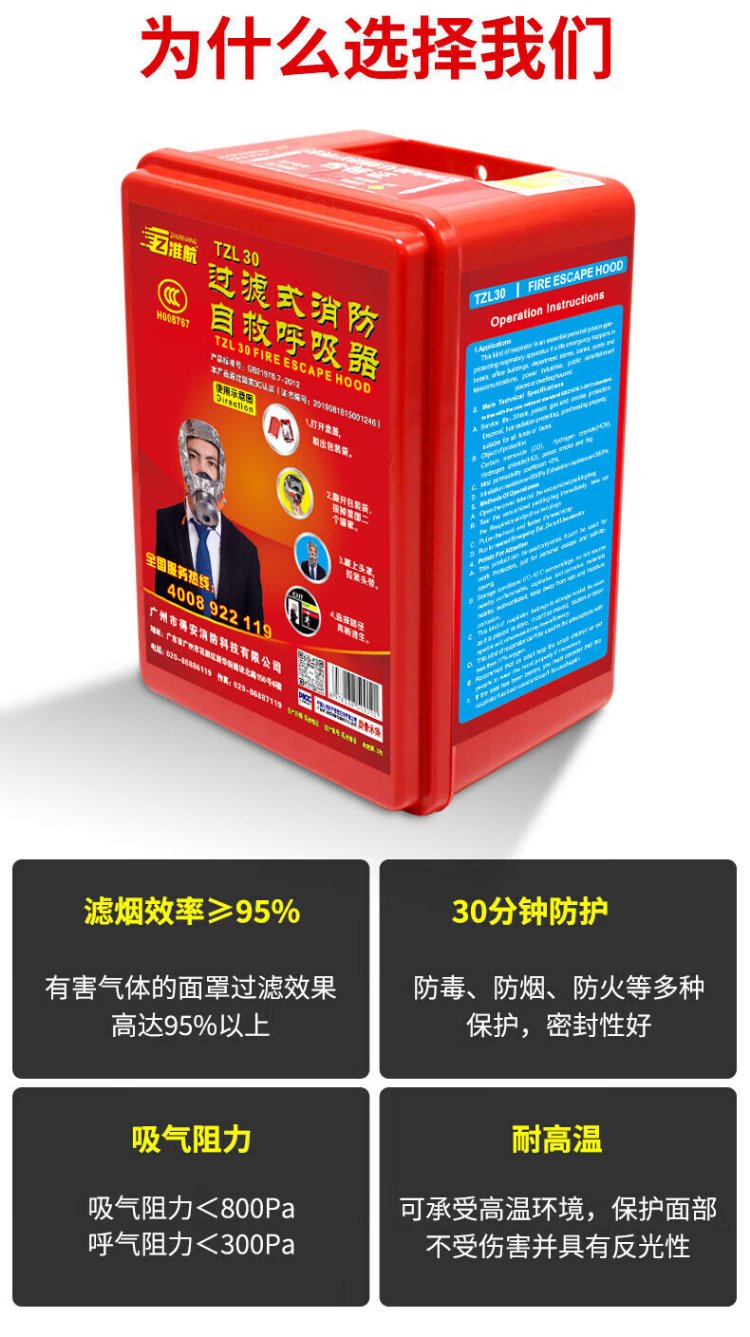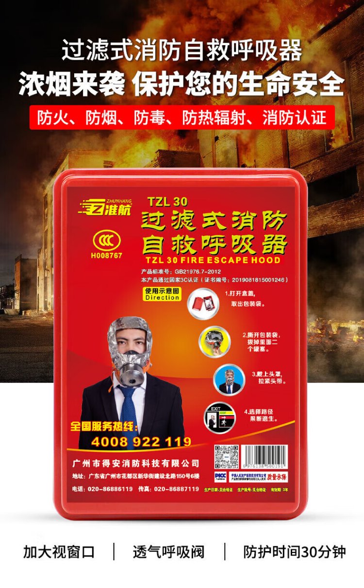 Zhunhang gas mask fire mask escape smoke mask self-rescue respirator TZL30 upgraded model