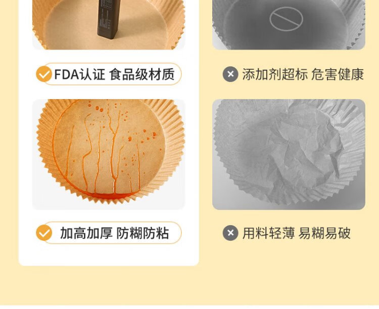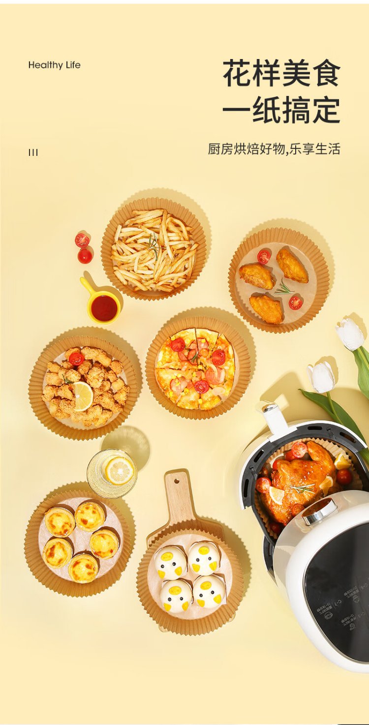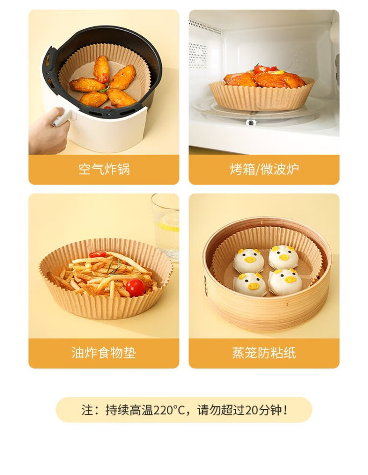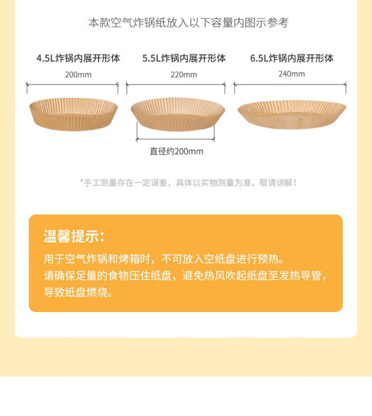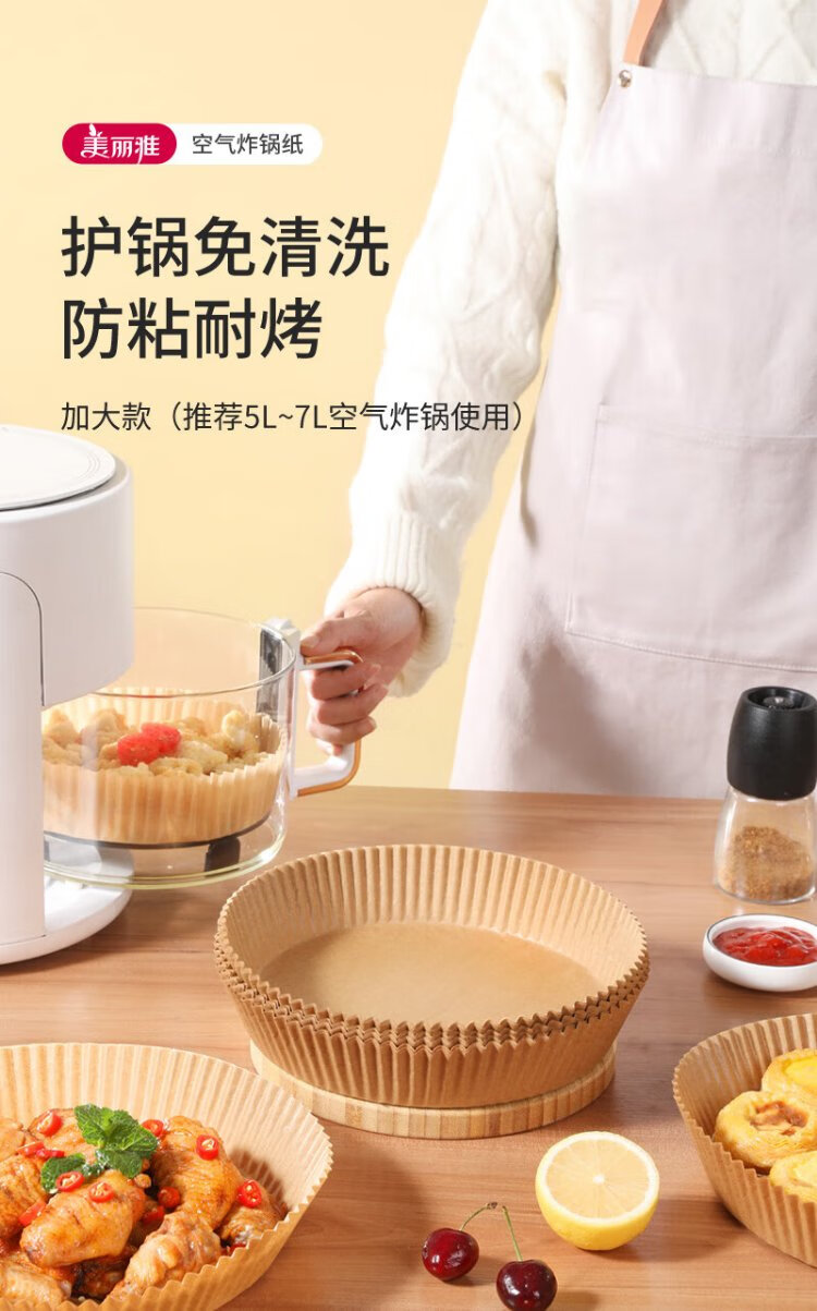 Meliya special paper for air fryer 20cm*100 pieces, baking oil-absorbing grease-proof paper, round silicone oil paper plate