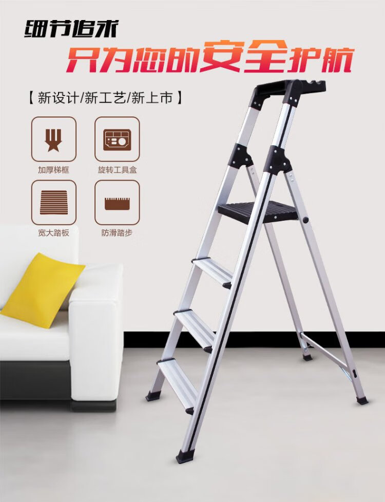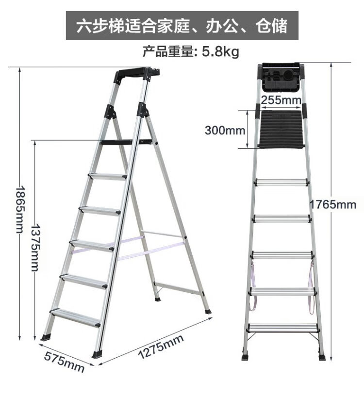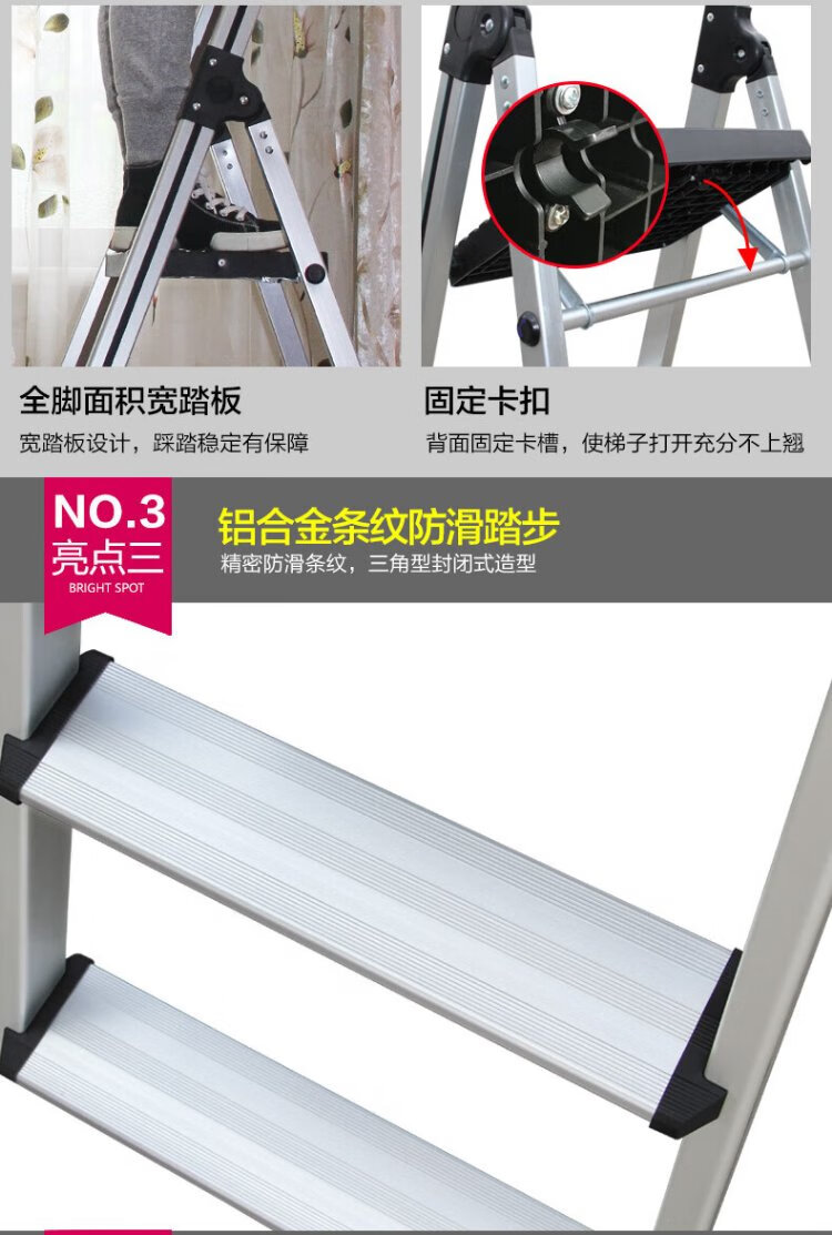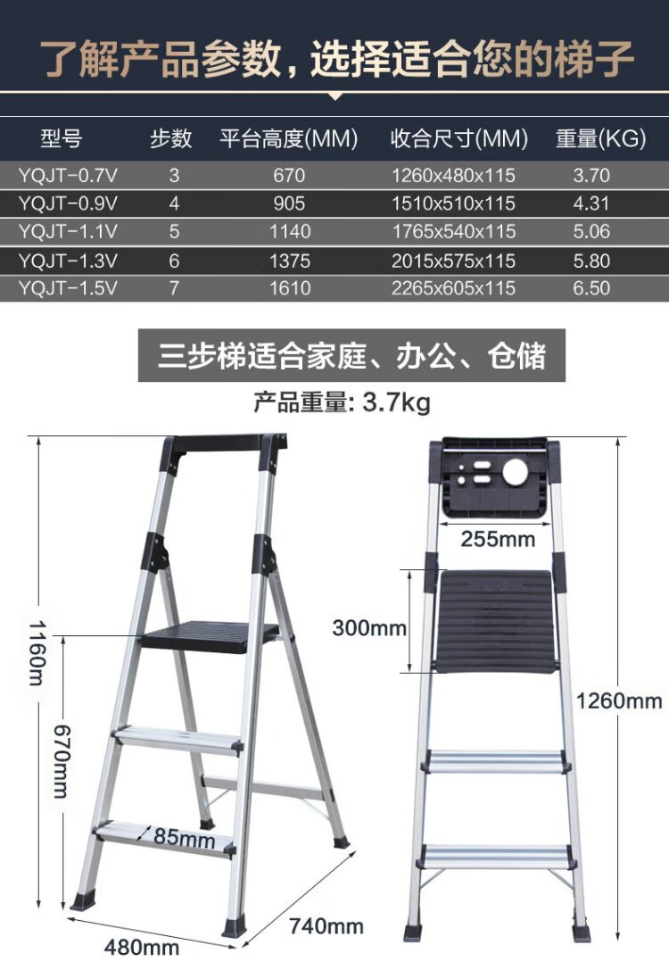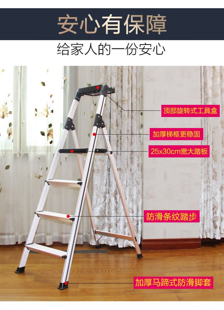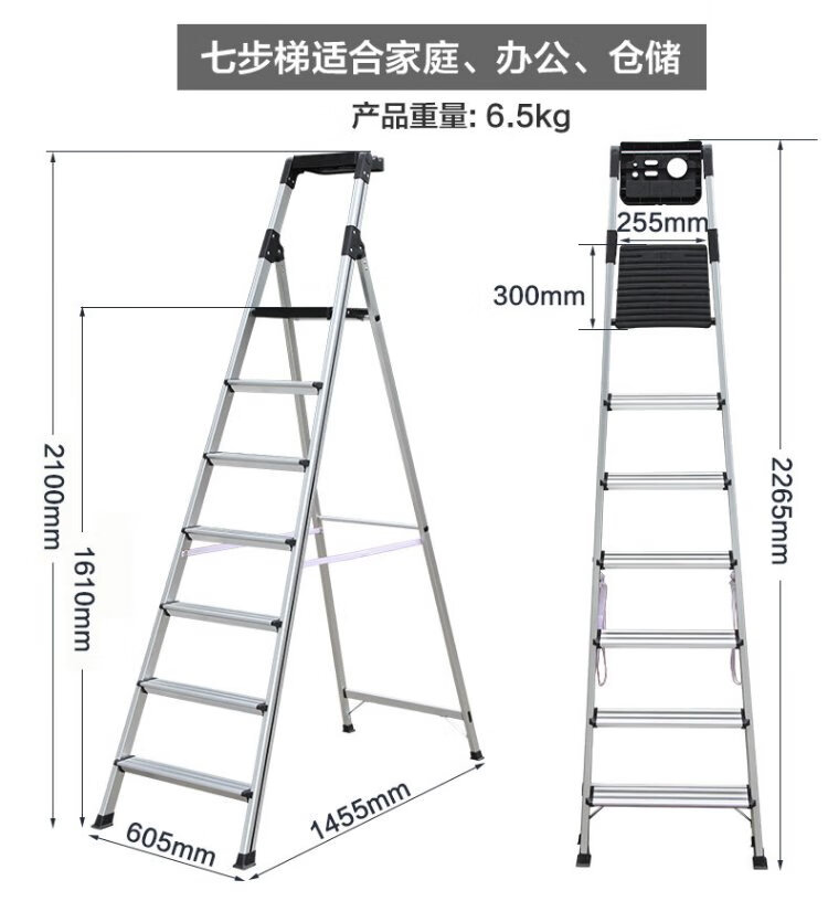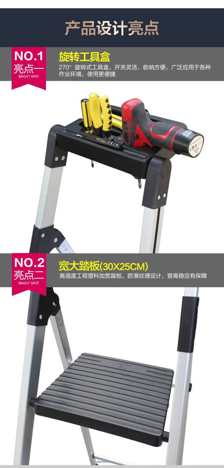 Ruiju folding herringbone ladder 7-step wide step ladder aluminum alloy ladder thickened multi-function multi-function ladder 1.5v