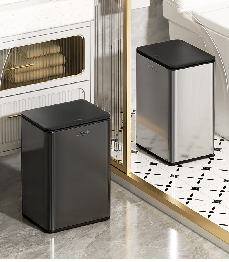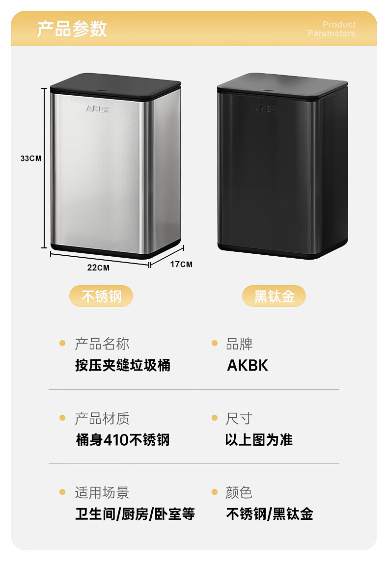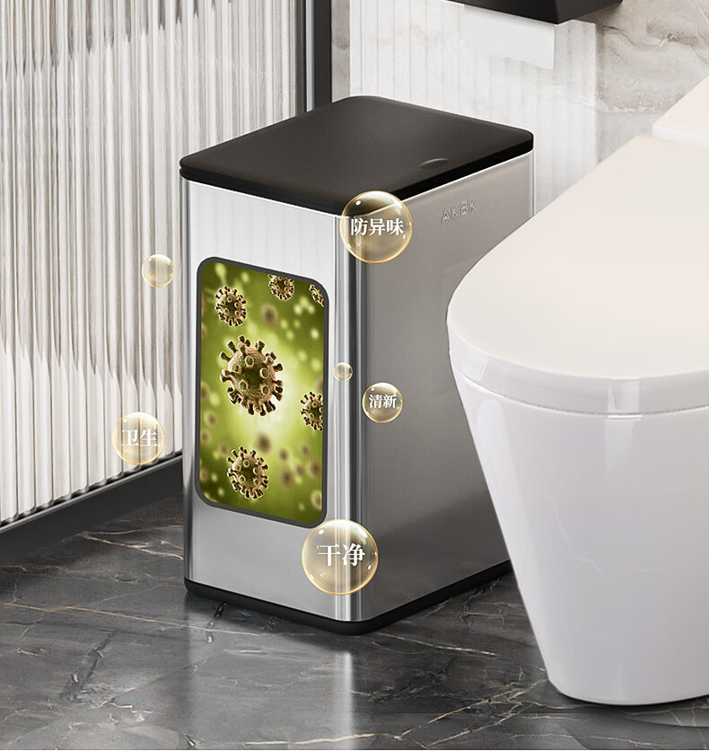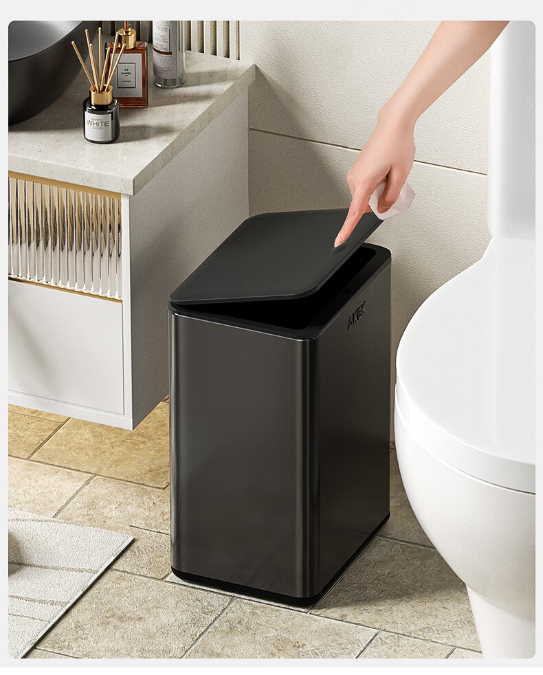 AKBK stainless steel trash can 12L silver bathroom gap press toilet with lid press ring living room light luxury