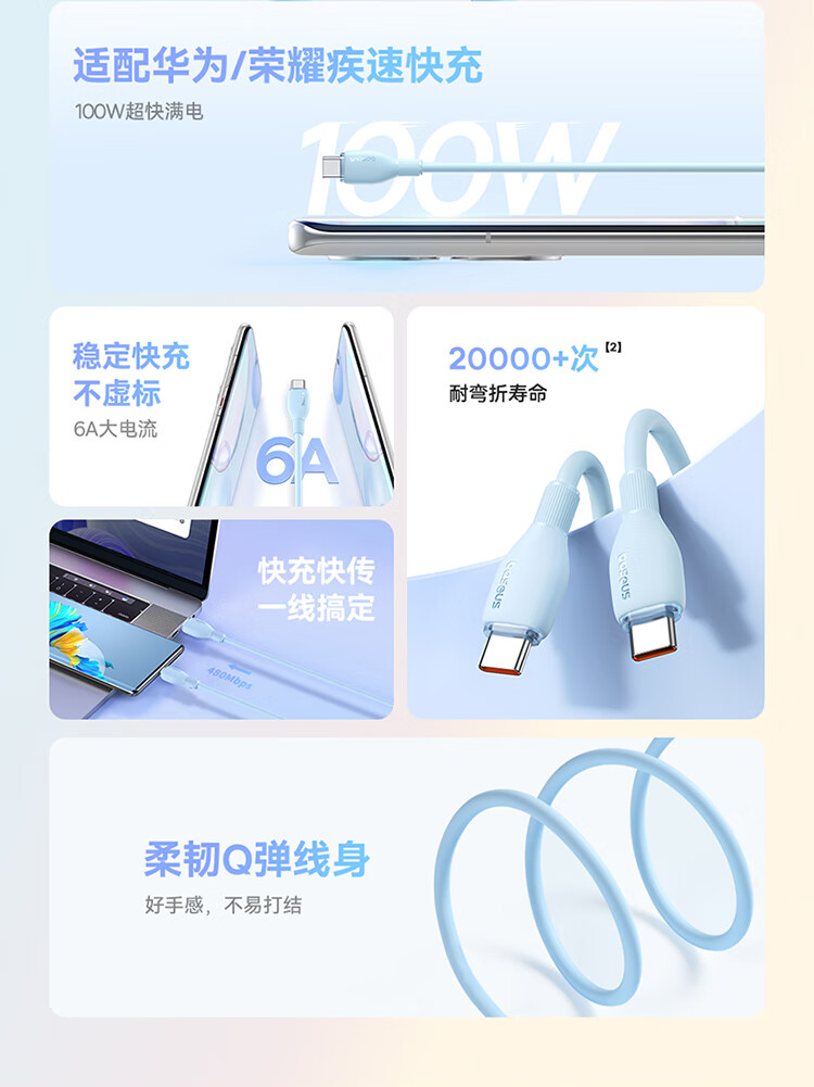 Baseus Baseus type-c data cable 6A suitable for Huawei Honor Xiaomi vivo Android charging cable 100W66w40w mobile phone usb to tpyec fast charging cable mate50pro