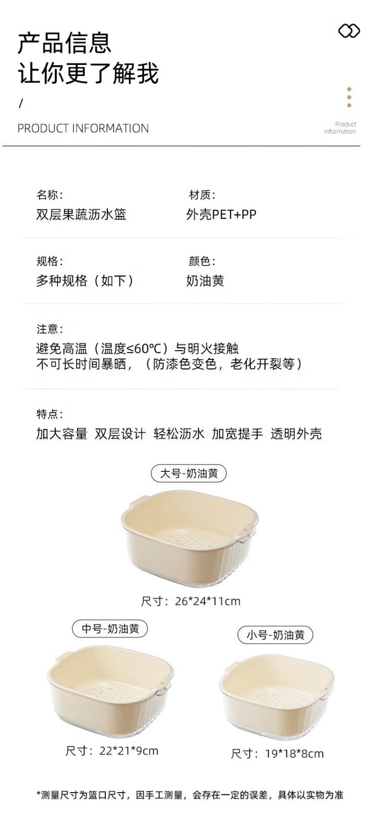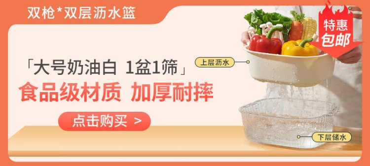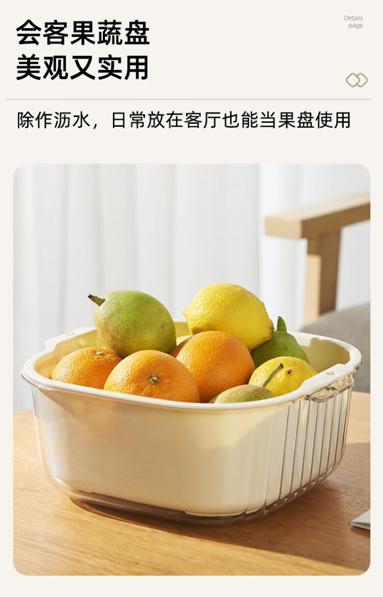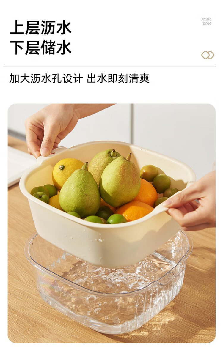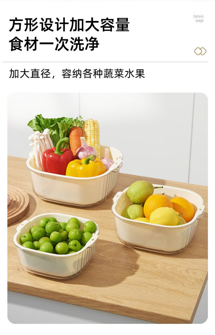 Double-gun double-layer vegetable sink drain basket kitchen household plastic fruit plate water filter and vegetable washing basket 6-piece set