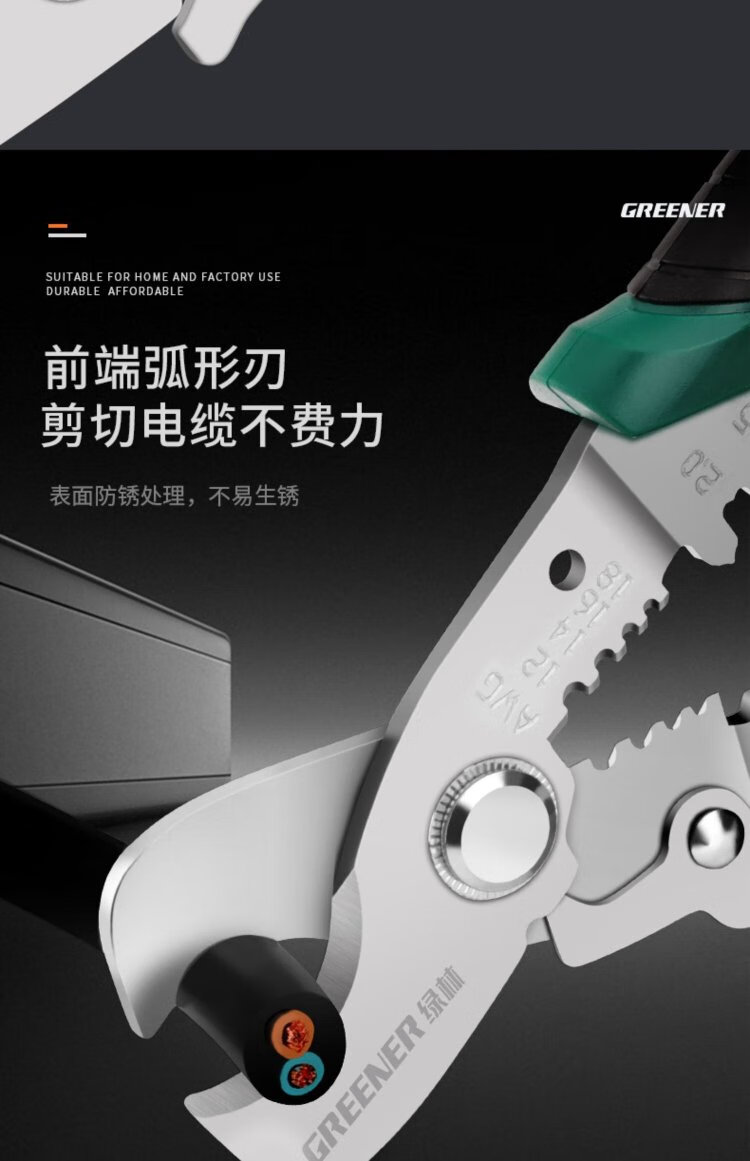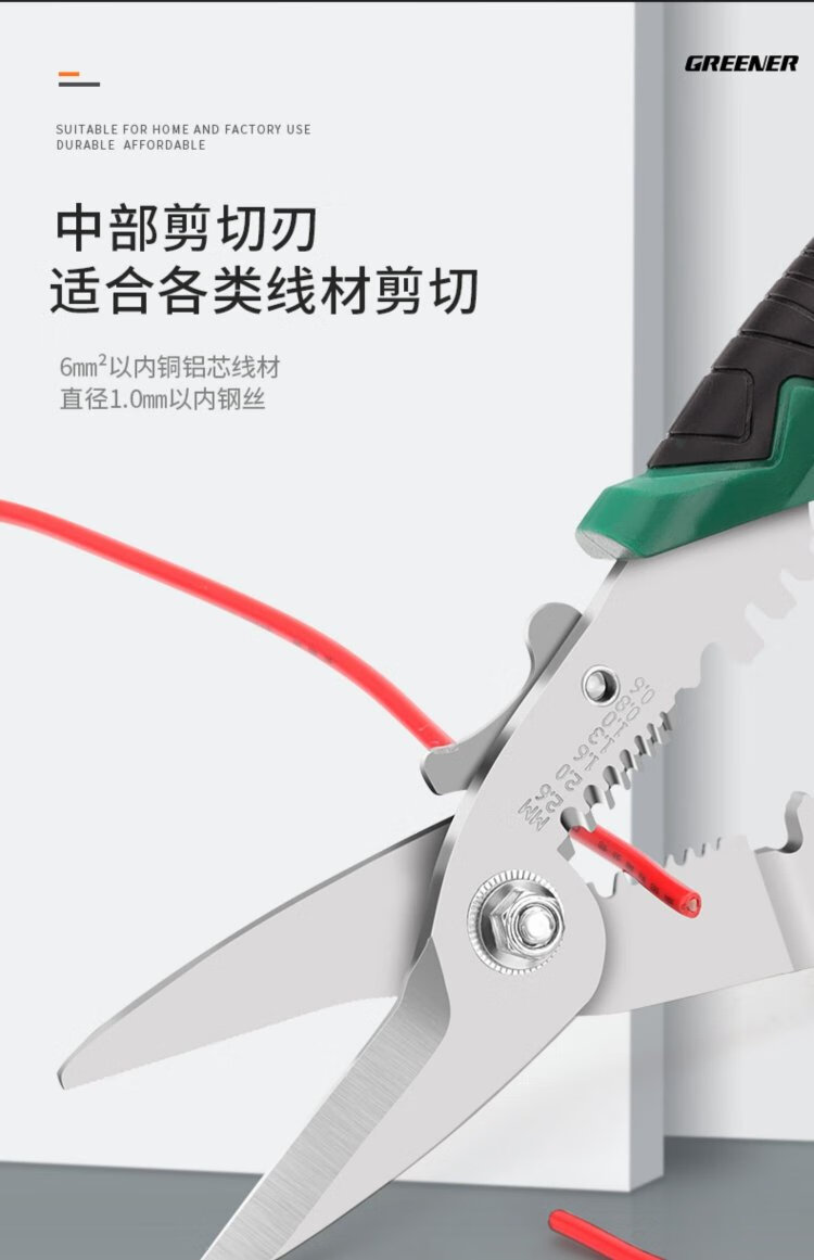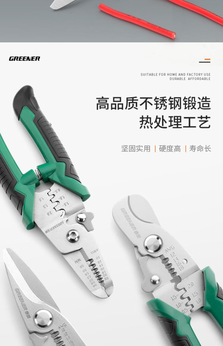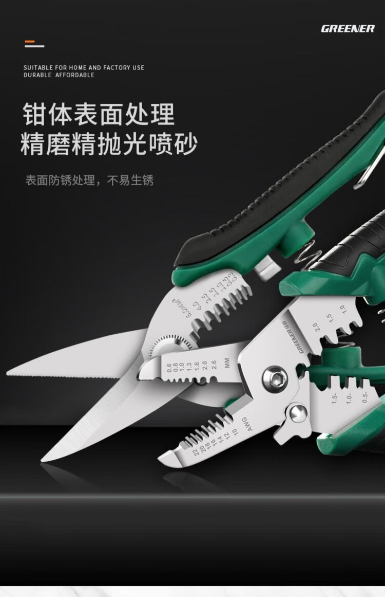GREENER wire stripping pliers, special tools for electricians, multifunctional household fiber optic cable pulling and cutting pliers, cable scissors, wire stripping pliers, wire crimping pliers