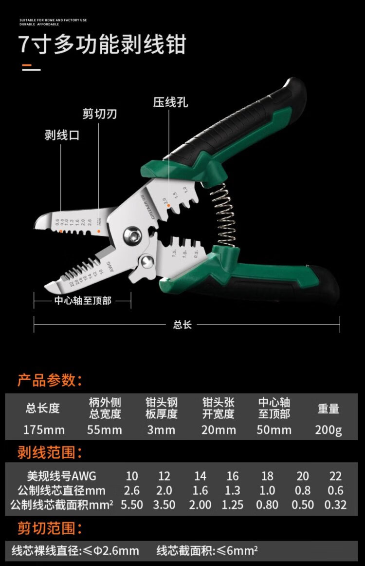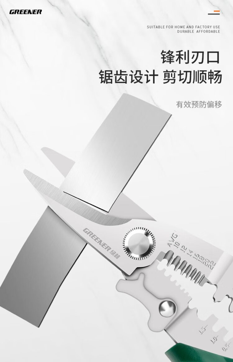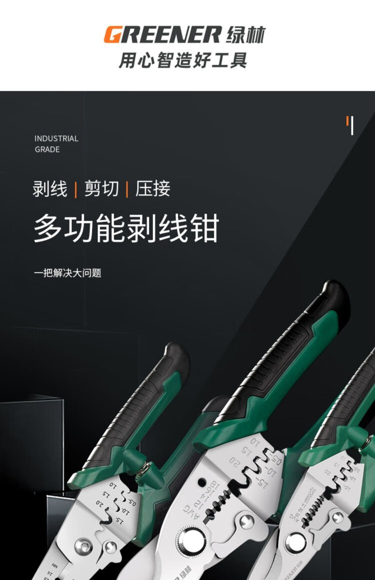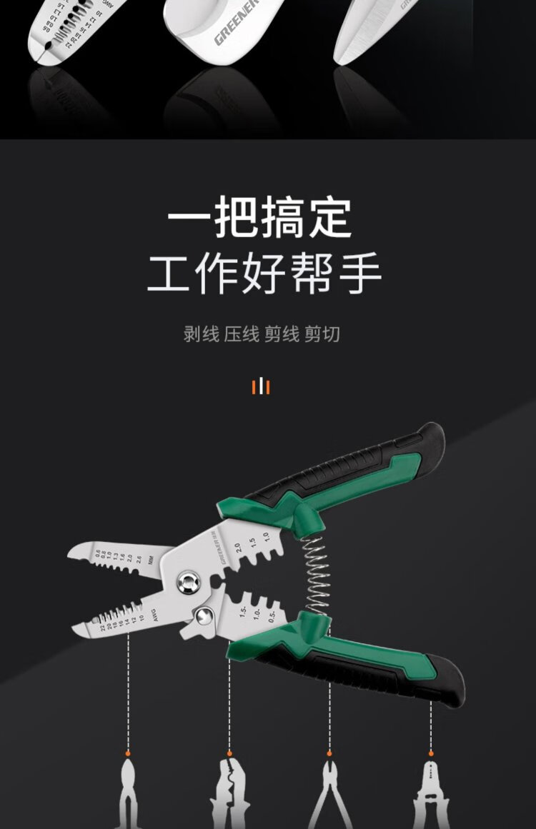 GREENER wire stripping pliers, special tools for electricians, multifunctional household fiber optic cable pulling and cutting pliers, cable scissors, wire stripping pliers, wire crimping pliers