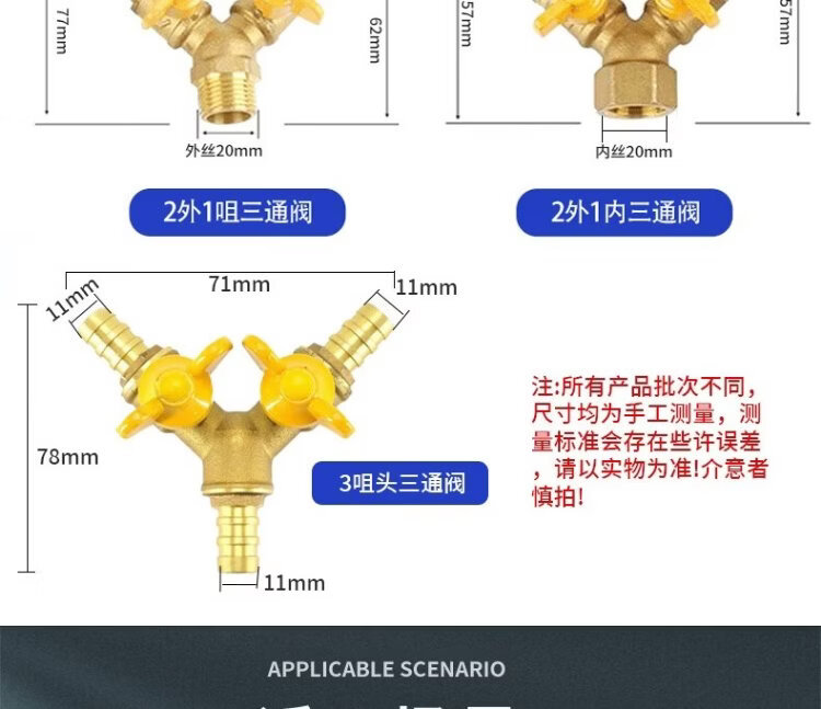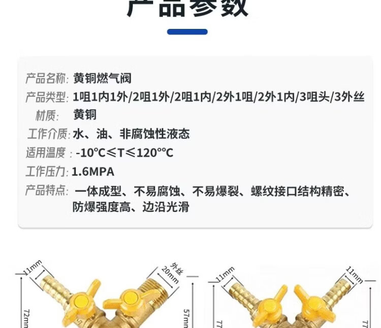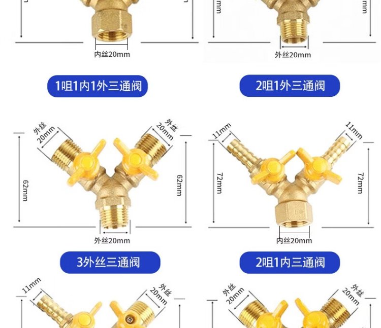 Deqi brass gas valve, inner and outer wire Y-shaped horn valve, ball valve, switch adapter, Jingcang 2 external 1 internal three-way valve